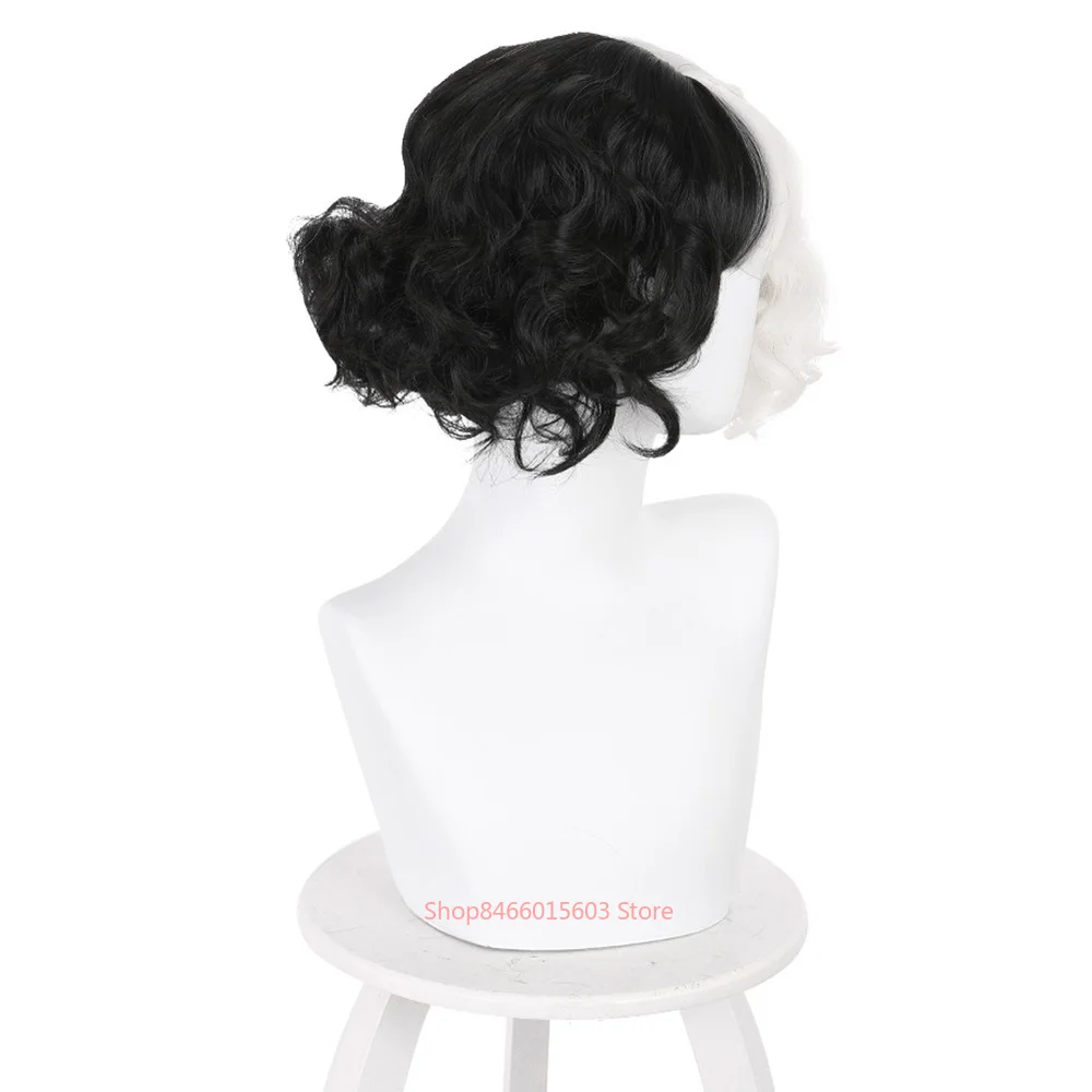 Парики для Хэллоуина Cruella De Vil Kuila, получерные короткие искусственные волосы, полуста, в подарок на Рождество
