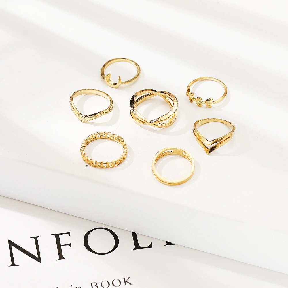7 шт. набор колец из металлического сплава, открытое круглое кольцо...