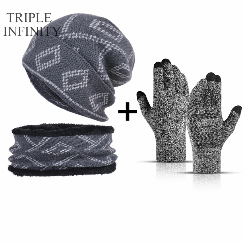 Зимняя мужская шапка с тройным знаком бесконечности, теплый костюм,...