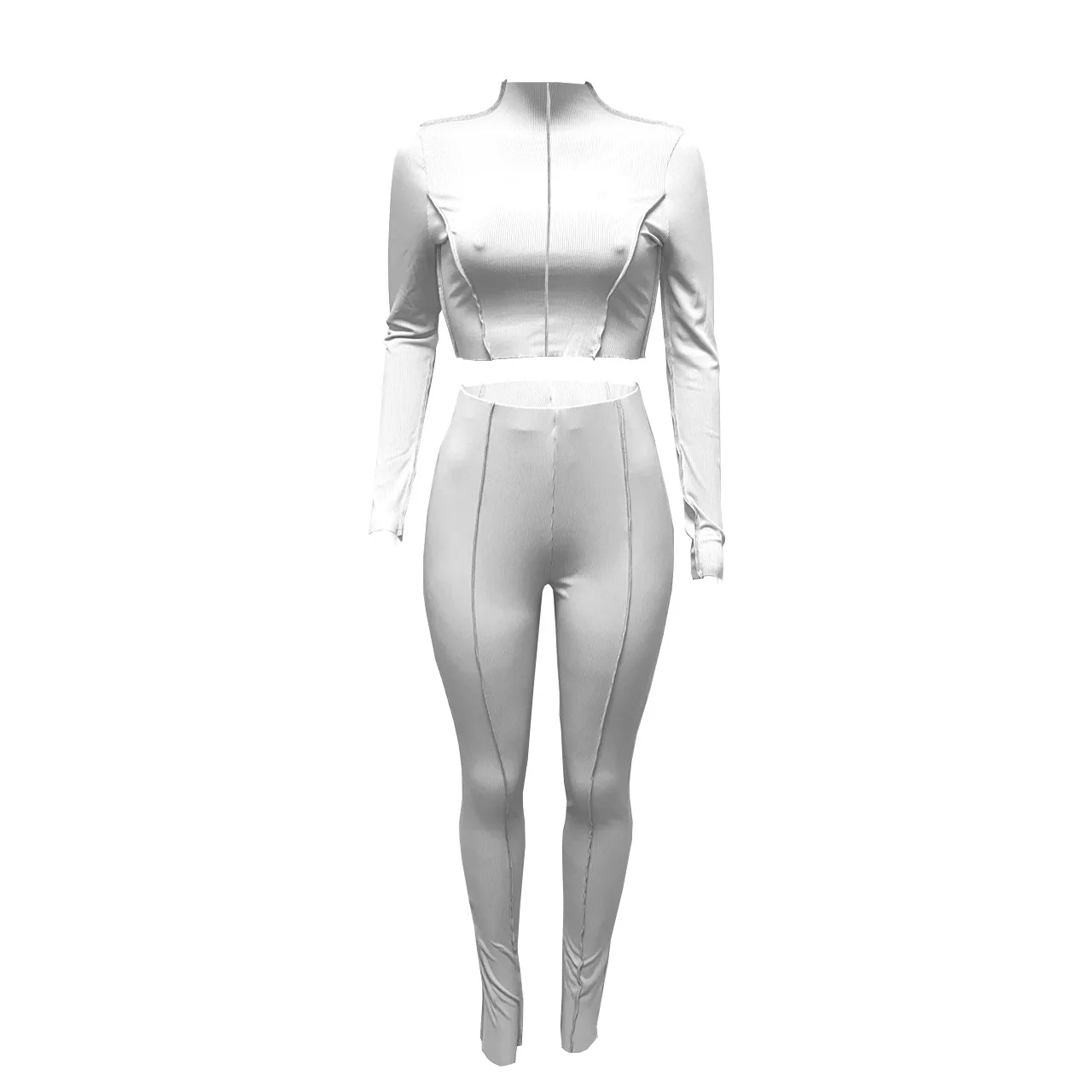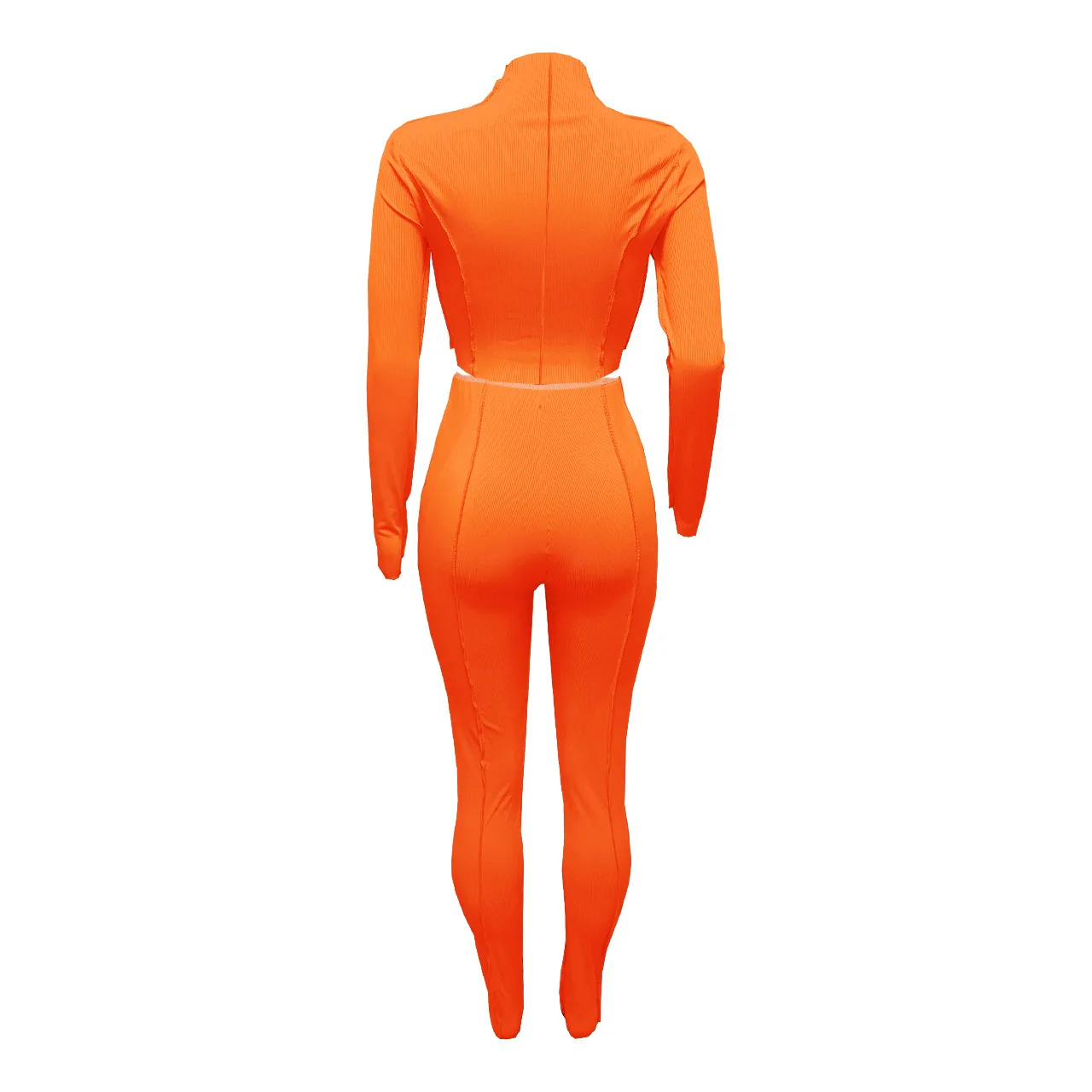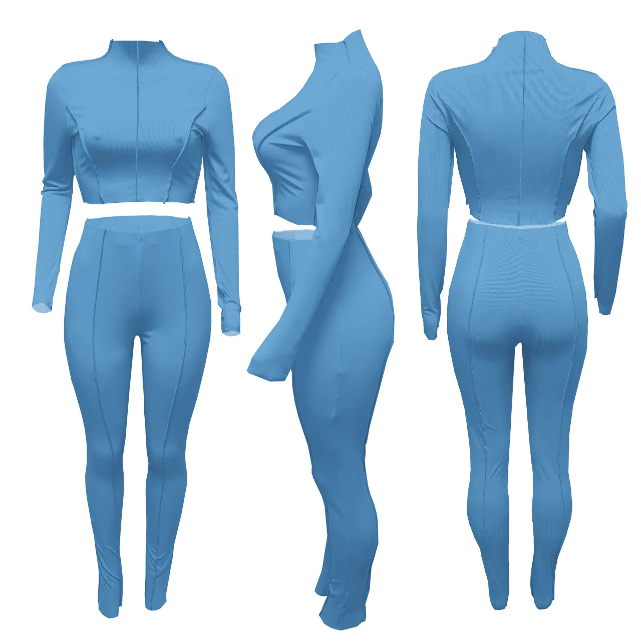 Женский спортивный костюм, осенняя кофта в рубчик, укороченный топ, комплект из 2 предметов, Женский Повседневный однотонный костюм для фитнеса, комплект из эластичных брюк