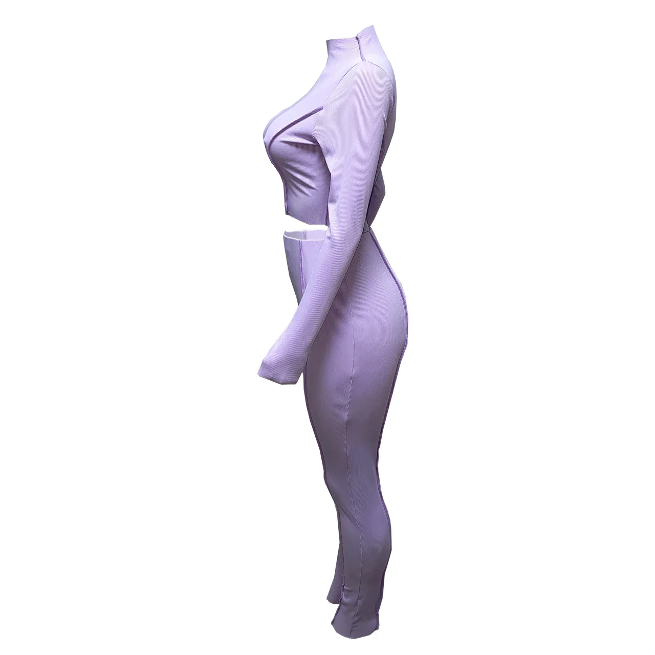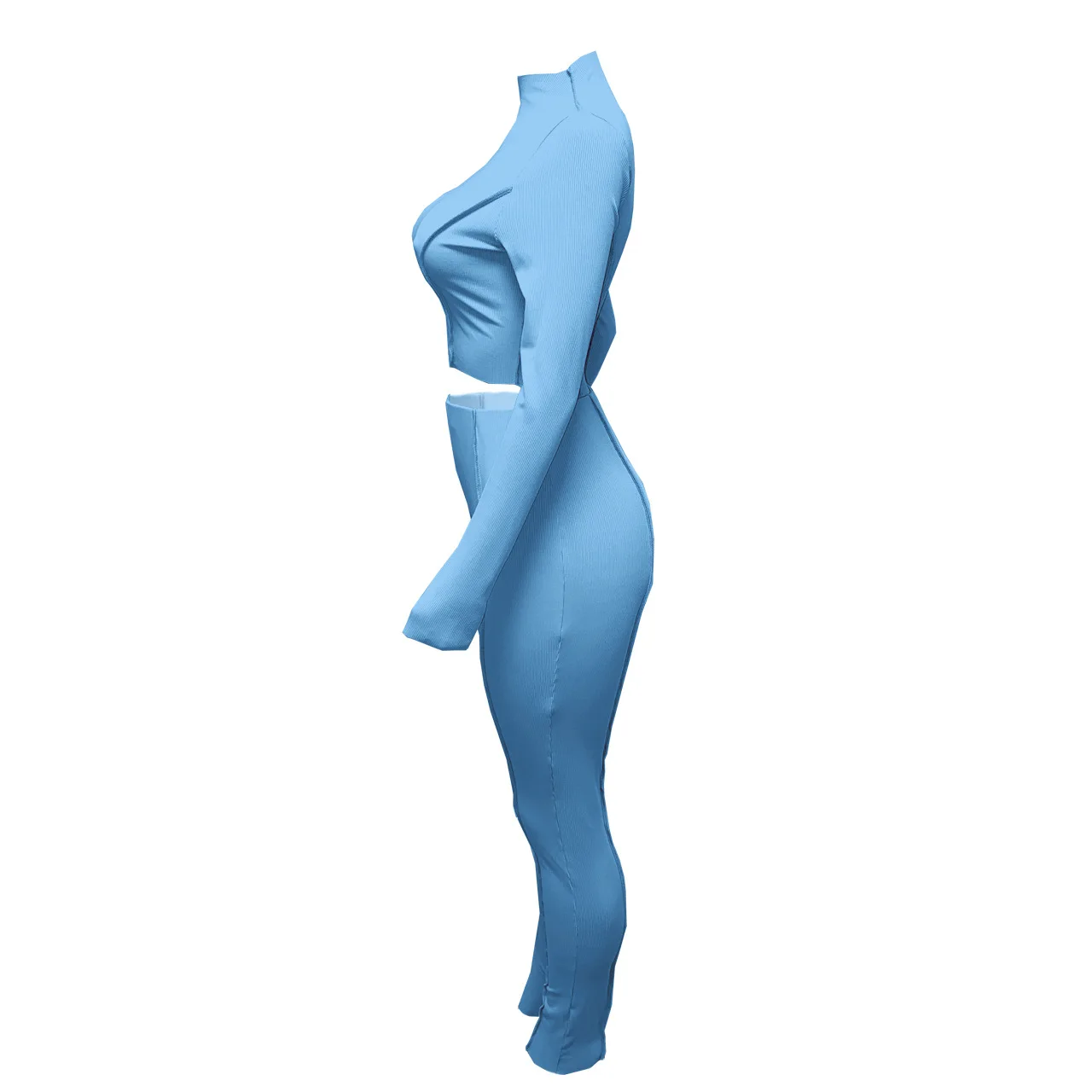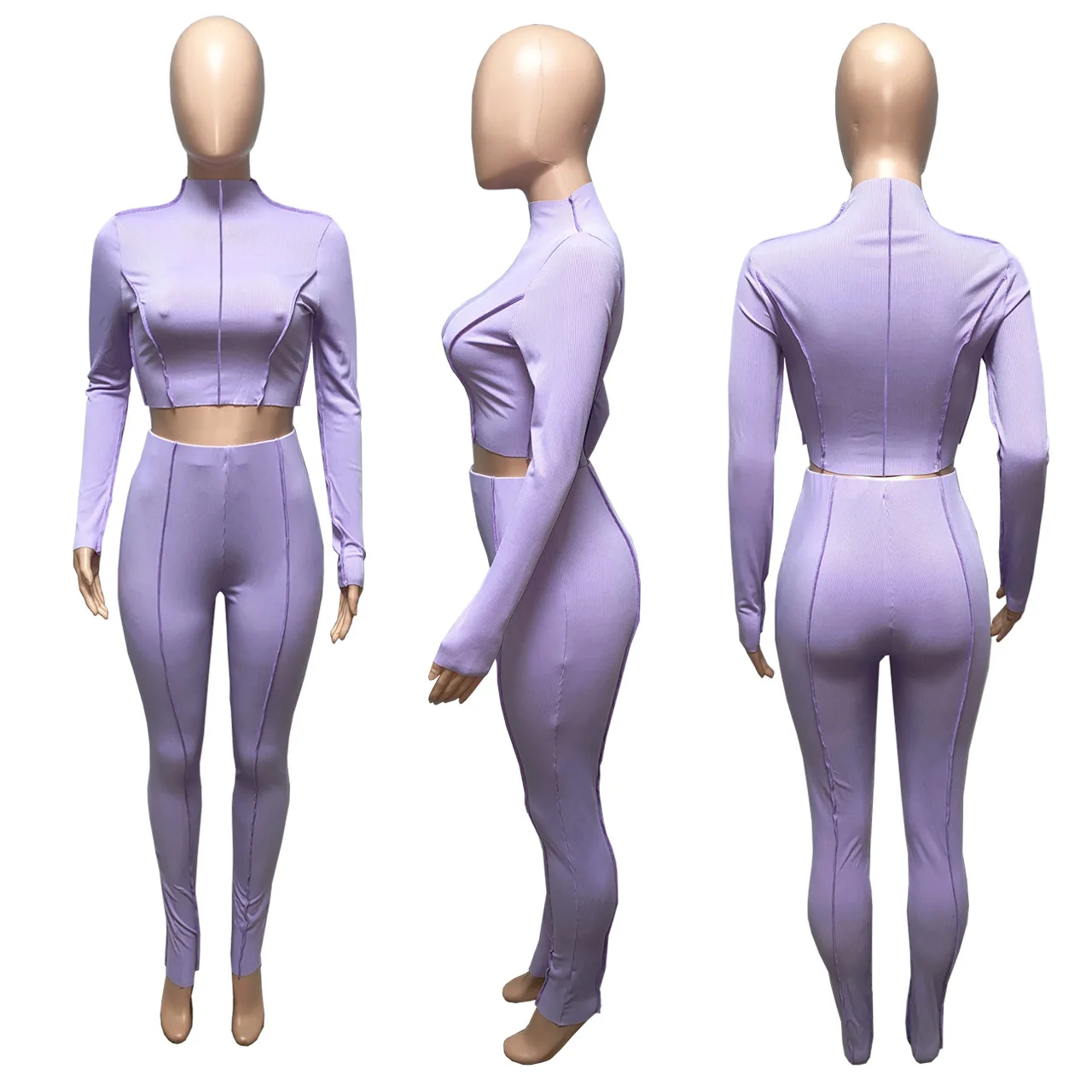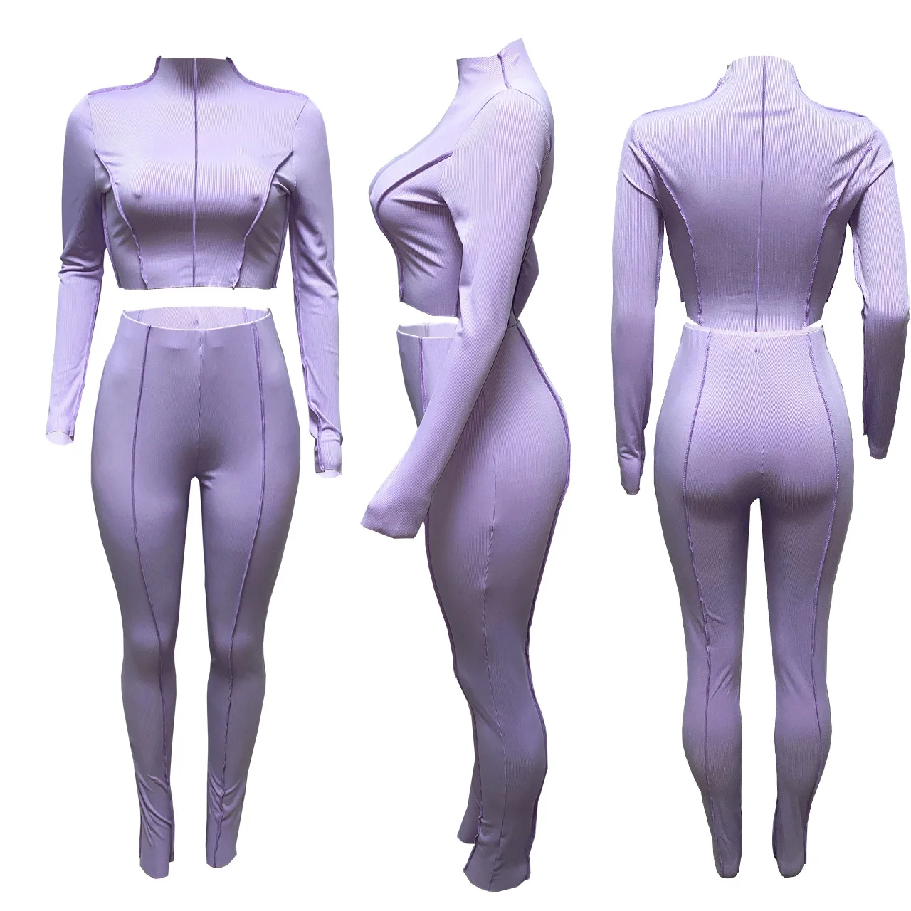 Женский спортивный костюм, осенняя кофта в рубчик, укороченный топ, комплект из 2 предметов, Женский Повседневный однотонный костюм для фитнеса, комплект из эластичных брюк