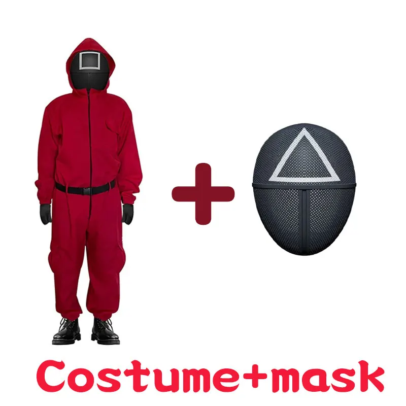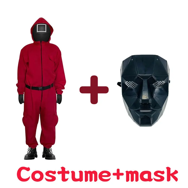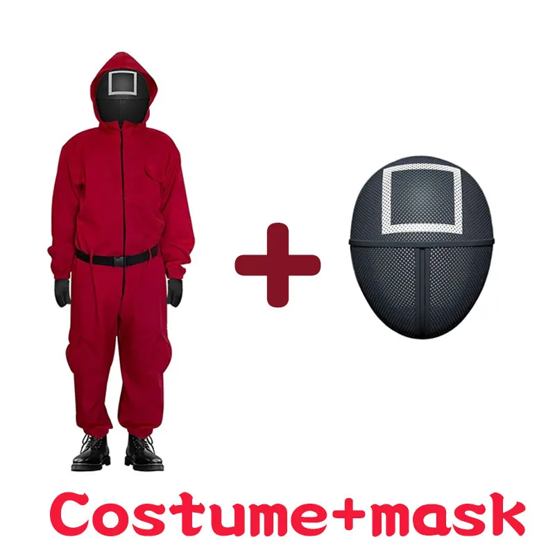 Костюм для косплея из игры кальмар, комбинезон с капюшоном и маской...