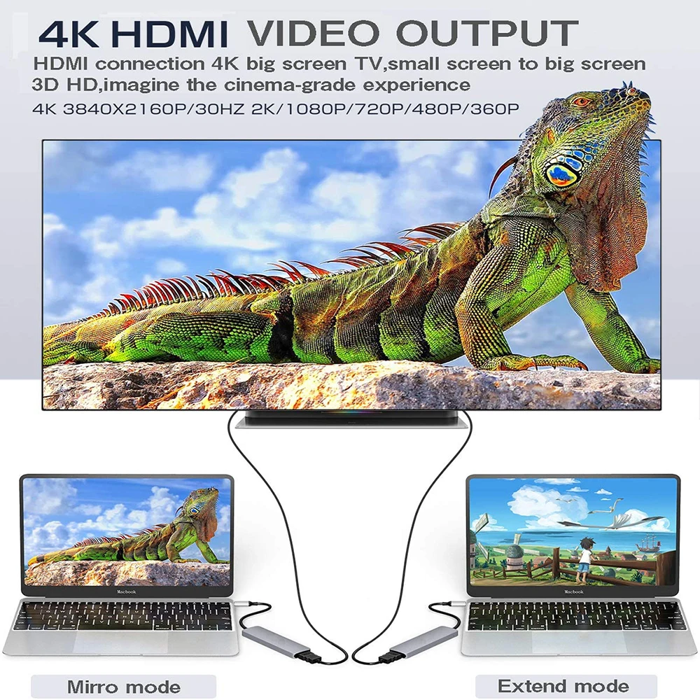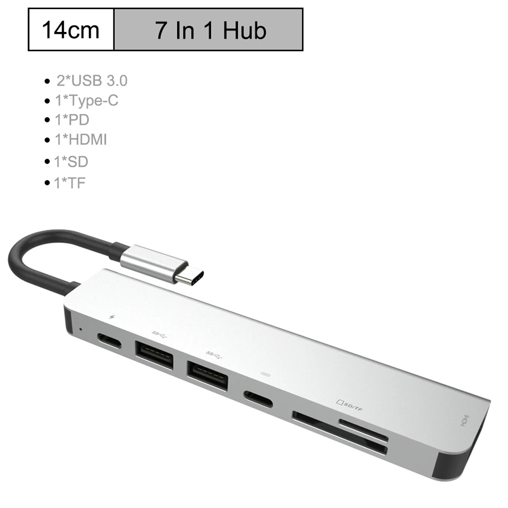 Характеристики:Материал: алюминиевый сплавЦвет: серебристый/серыйРабочая температура: 40-45 °Интерфейс:> Разъем USB 3,1 Type-C> USB 3,1 Type-C порт для зарядки> Только порт передачи данных USB C> Порт USB 3.0 Type-A> Выходной порт HDMI> Слот для tf-карты