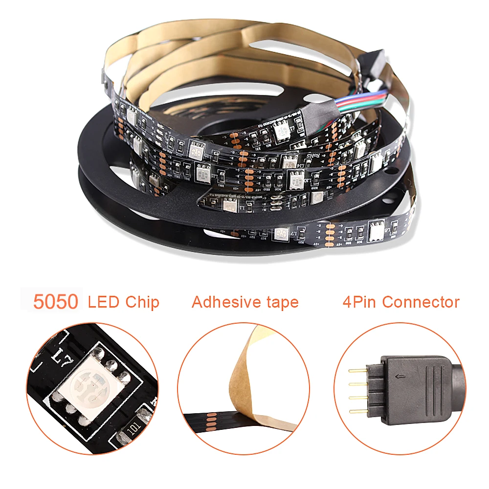 USB Светодиодная лента 5050 RGB с 4-контактным угловым разъемом, 1 ...