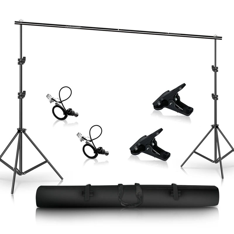 2 x подставка для фона1 x комплект перекладин для фона2 x Пластиковые зажимы2 x зажимы для фона1 х Портативная сумка