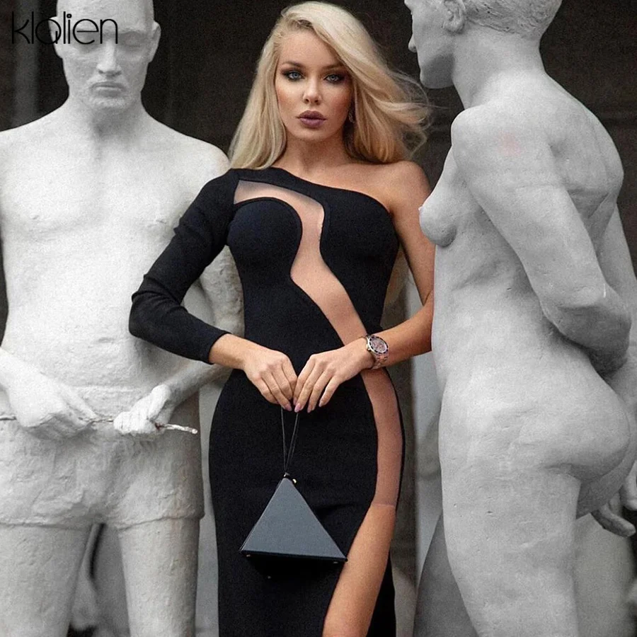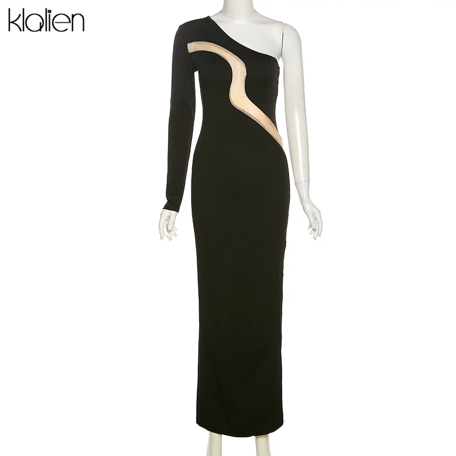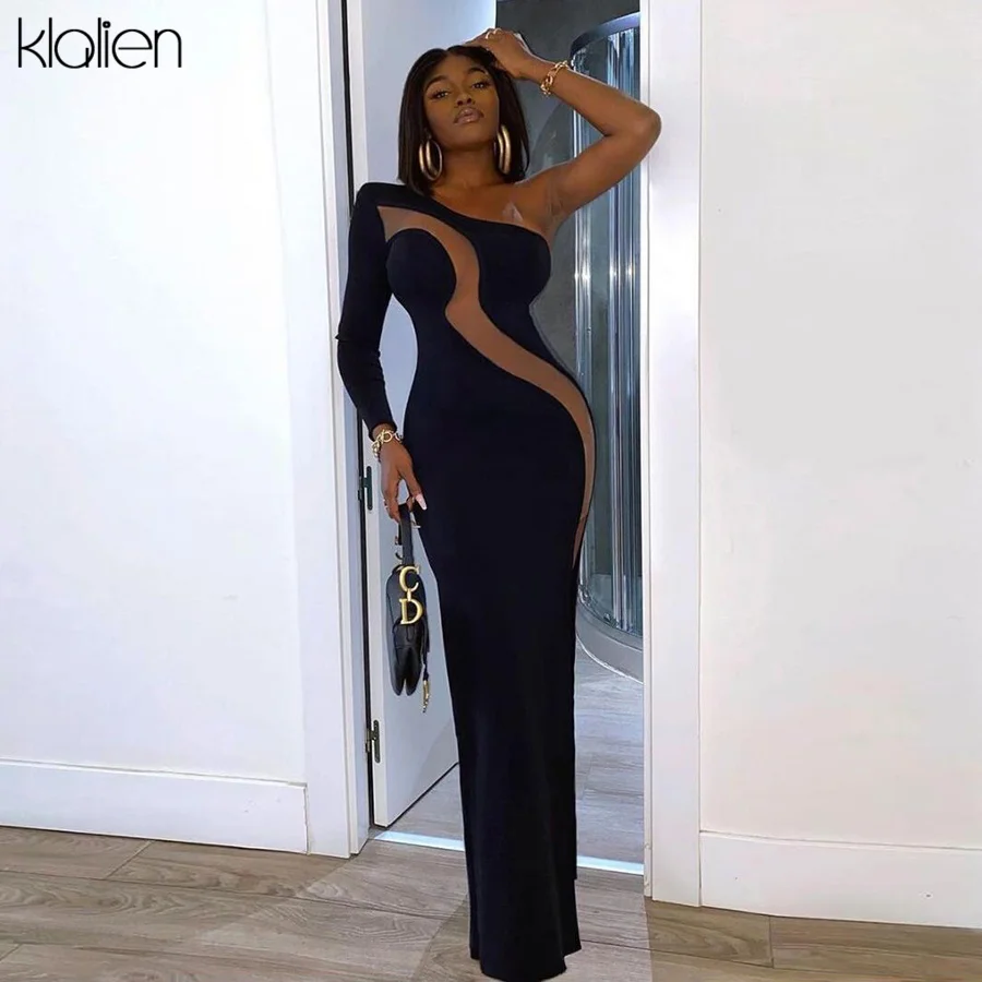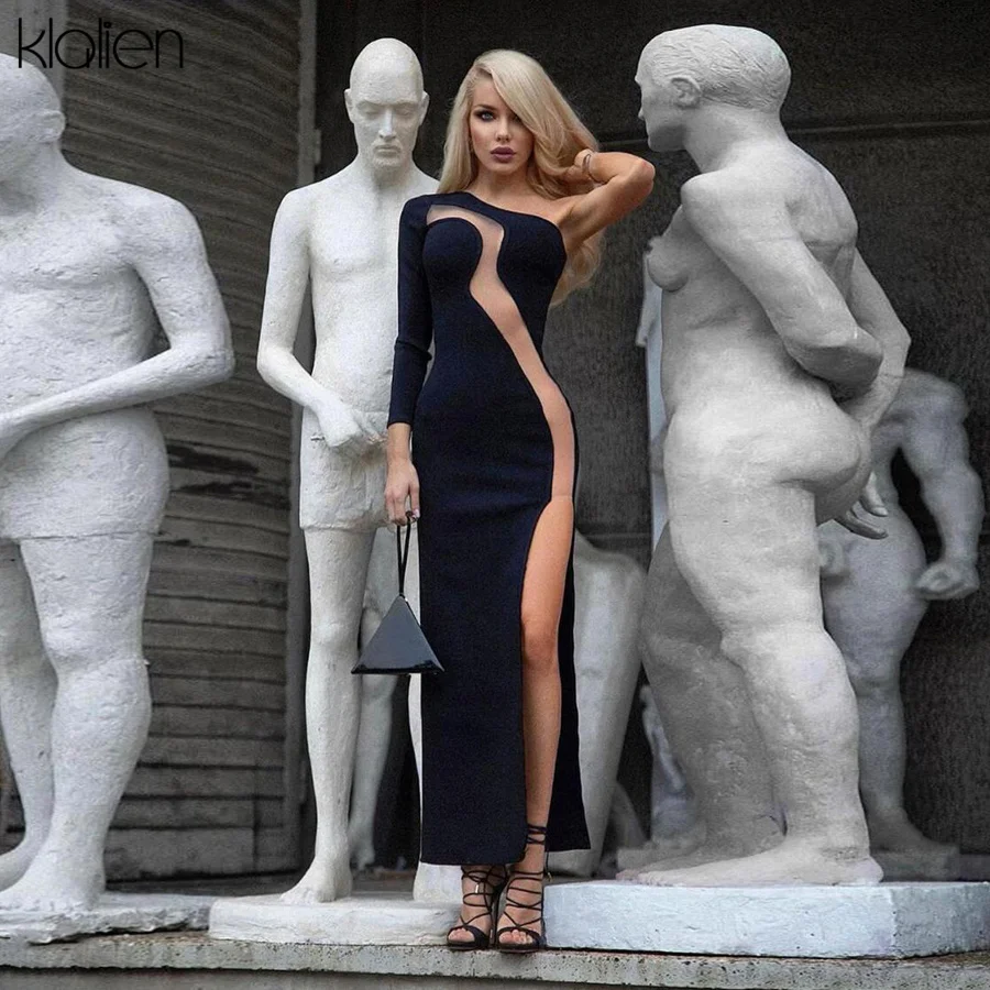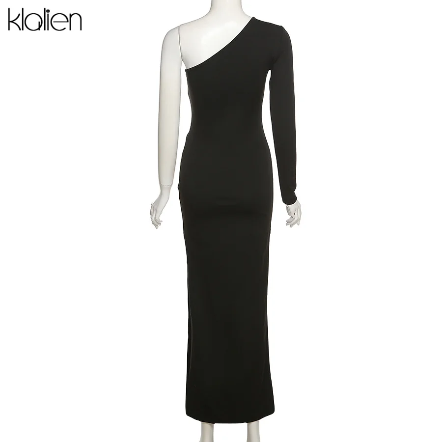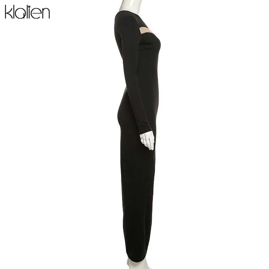 KLALIEN Модное Элегантное французское романтическое Клубное Длинное Платье Для Женщин Осеннее Новое праздвечерние чное однотонное черное платье макси для отпуска