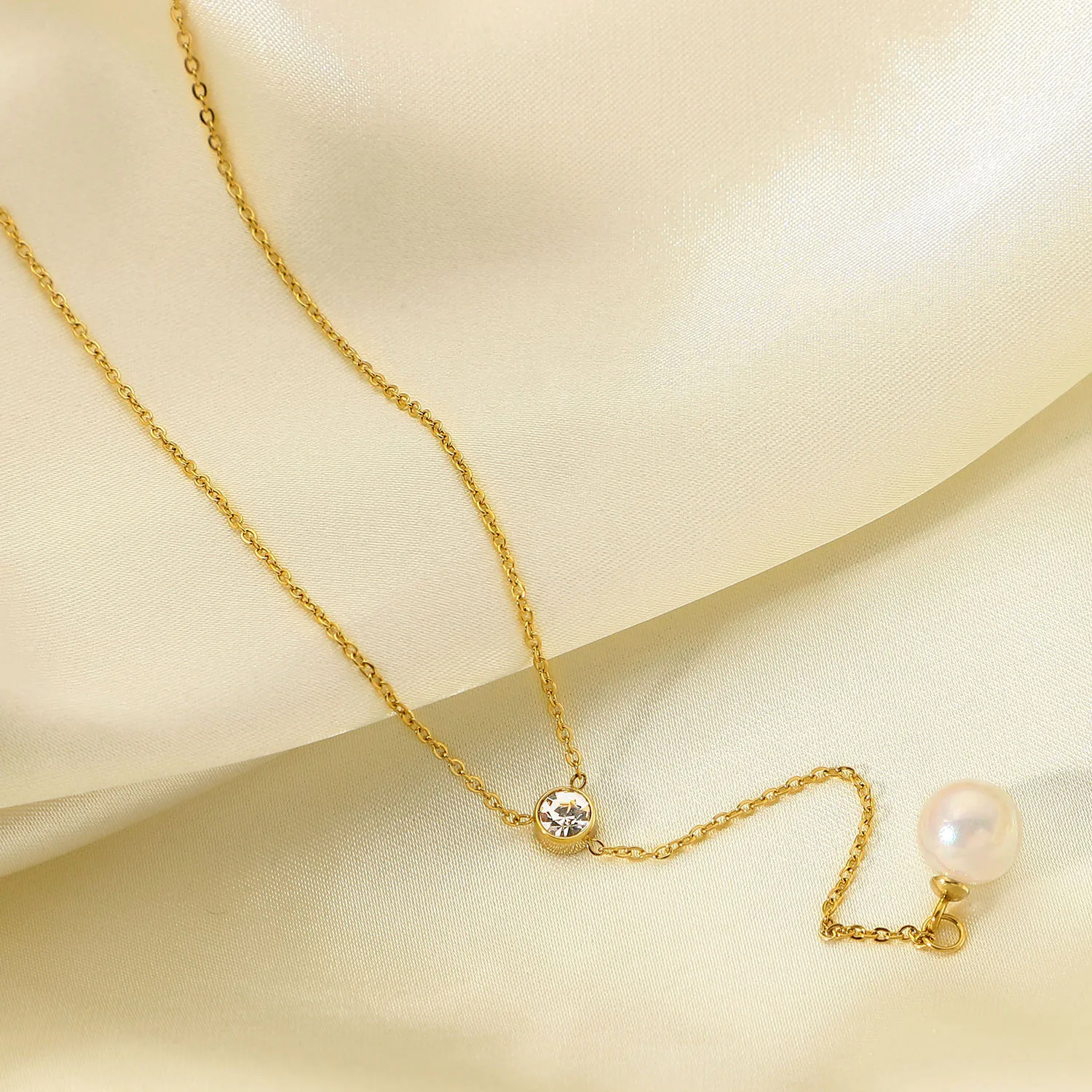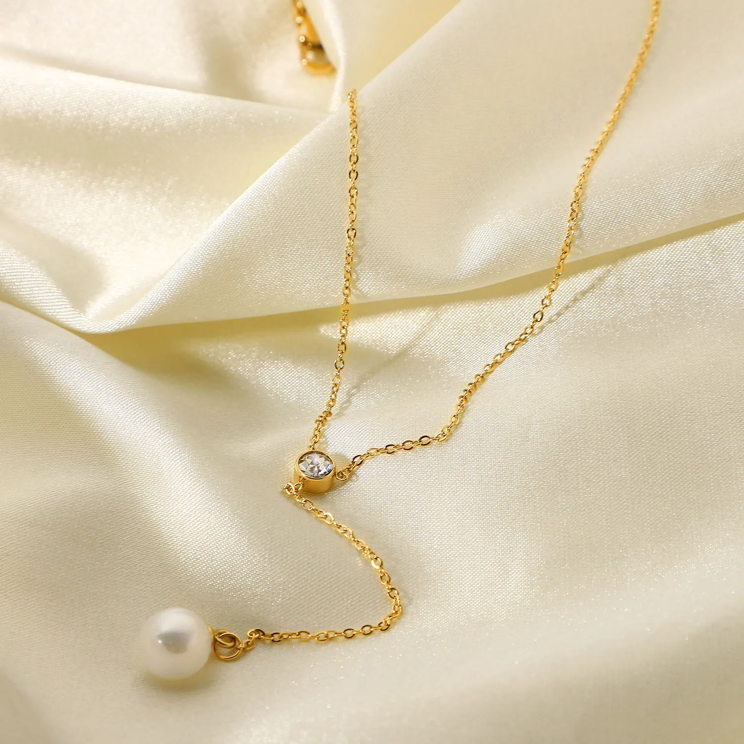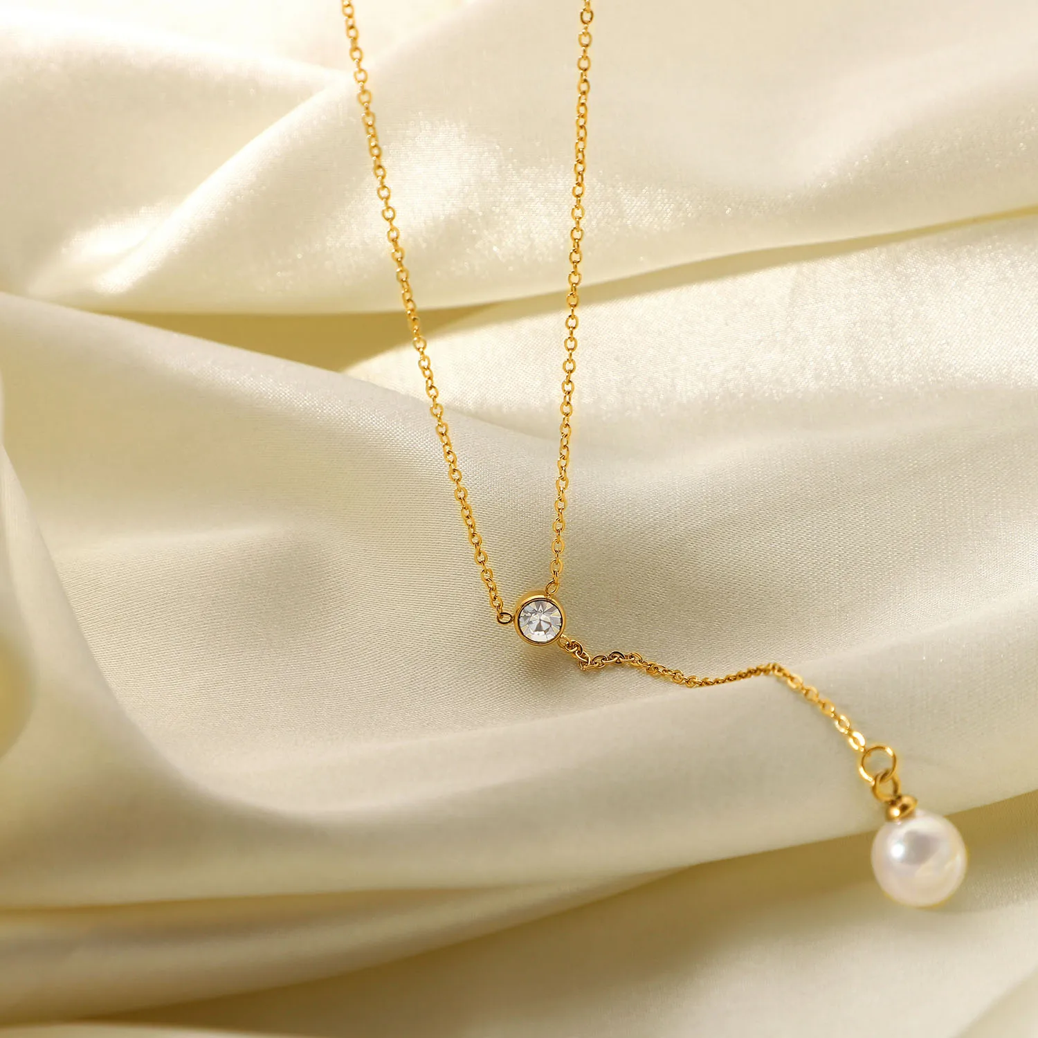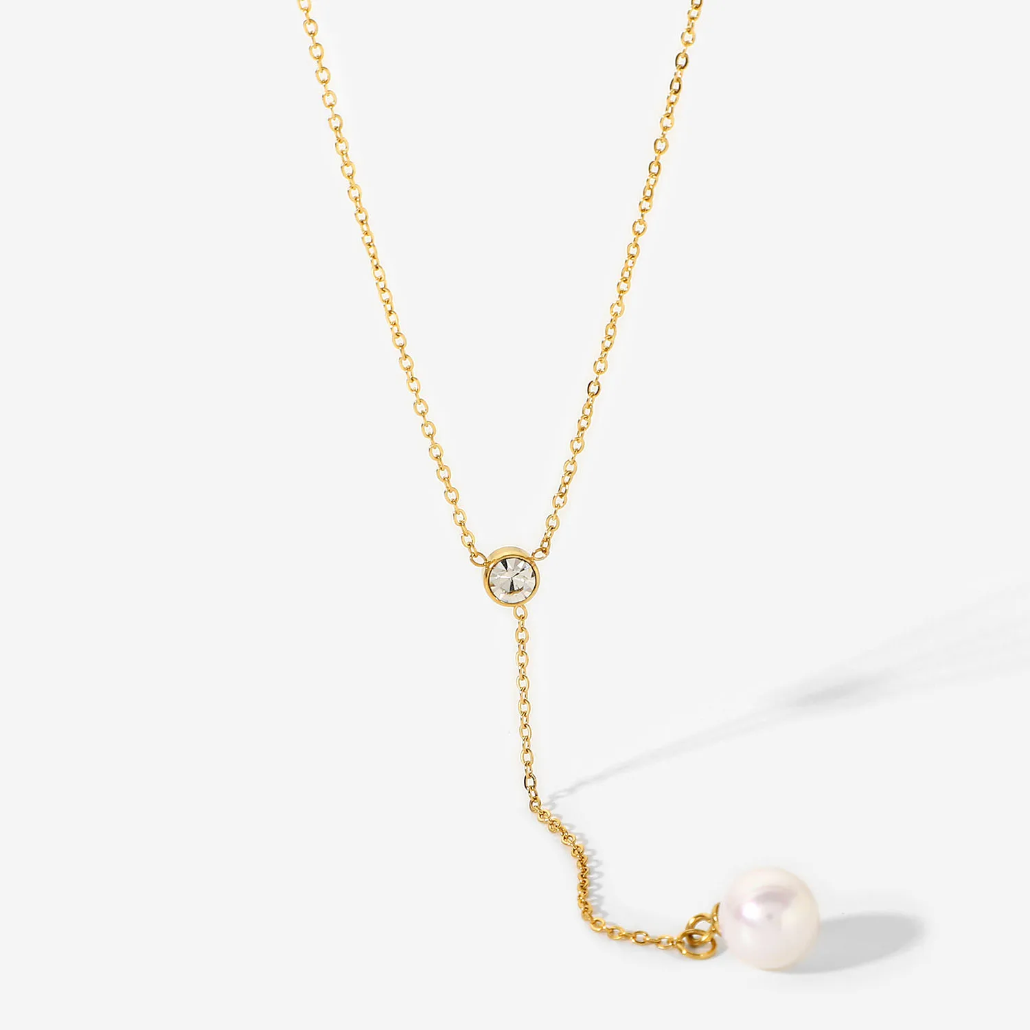 Модный жемчужный чокер Y-образная цепочка из нержавеющей стали с циркониевым покрытием Изысканная золотая цепочка до ключиц Модный женский аксессуар