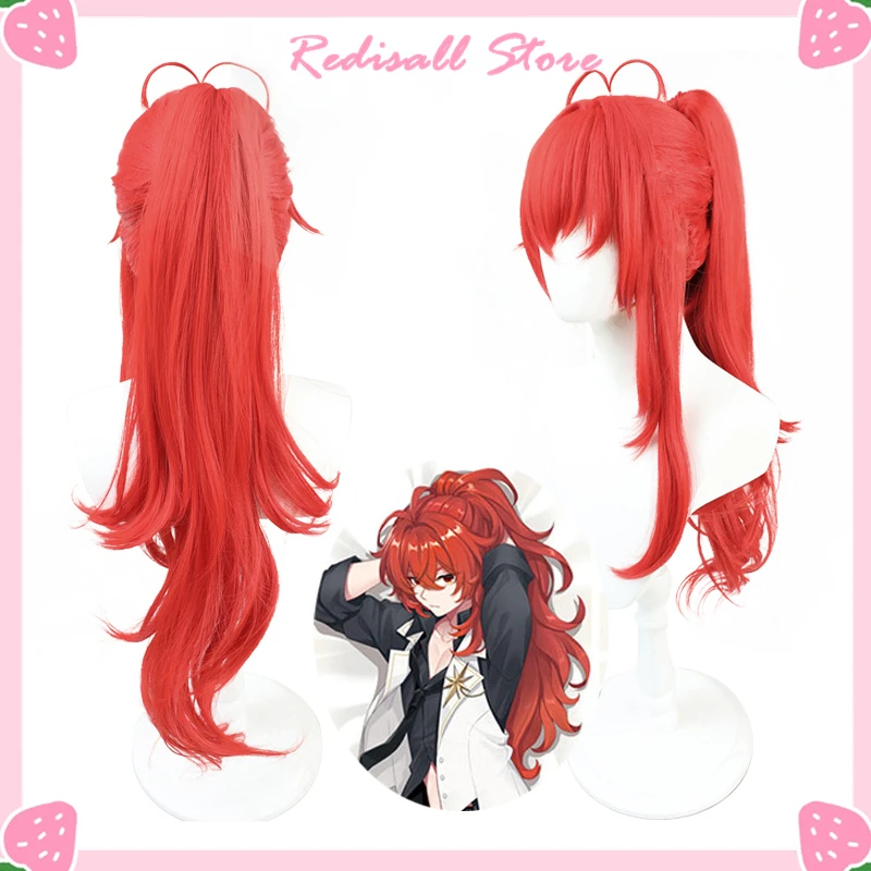 Комикс разбавленный парик Genshin ударопрочный косплей красный высокий хвост длинный вьющийся термостойкий Взрослый мужской женский мужской Хэллоуин ролевая игра