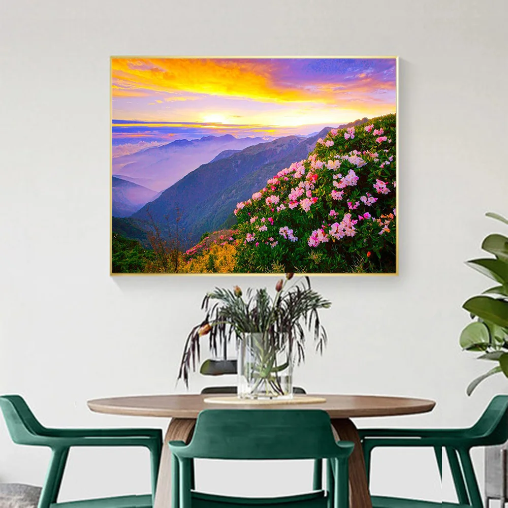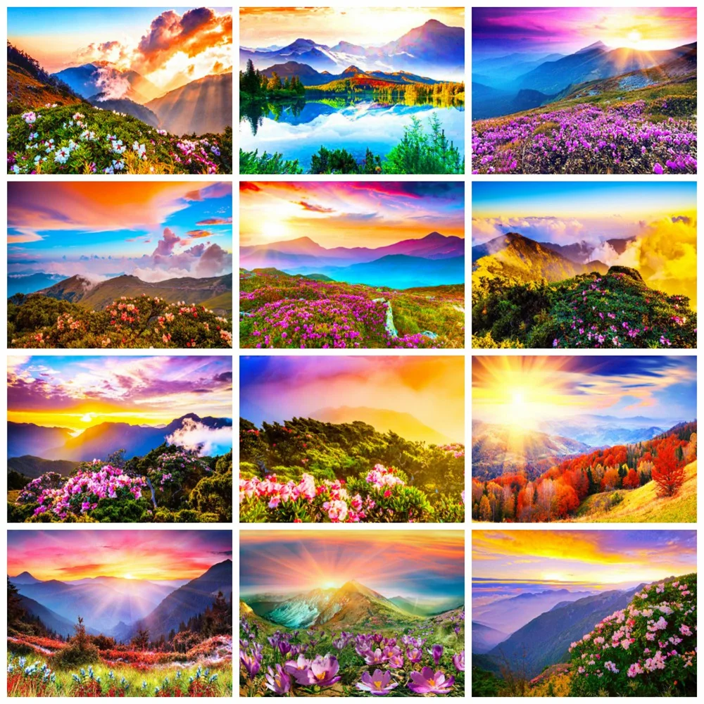 Алмазная 5d картина сделай сам HUACAN, закат, Горный пейзаж, домашний декор, мозаика с вышивкой, цветок, натуральная Наклейка на стену