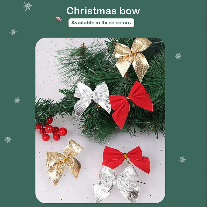 12 шт.лот банты для творчества, украшения для рождественской елки, банты для творчества, рождественские банты, золотой, серебряный, красный бант, украшение для дома