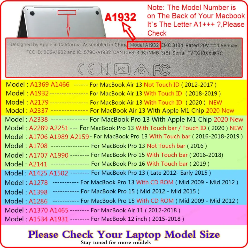 Чехол для ноутбука MacBook Touch ID 2020 M1 Air 13 A1932 A2179 для ...
