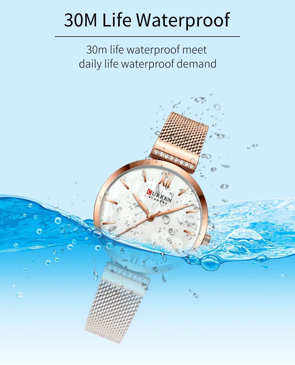 Часы CURREN женские кварцевые, модные роскошные повседневные Простые, с браслетом с шармами из нержавеющей стали