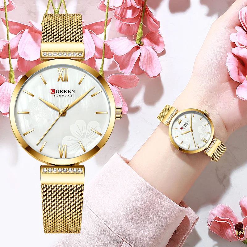 CURREN Модные часы для женщин роскошный кварцевый Золотой Элегантный браслет наручные женские часы Дамское Платье нержавеющая стальХарактеристики:Диаметр циферблата: 33 ммЧехол Толщина: 8 ммДлина Часов: 230 ммШирина ремешка: 12 ммВес часов: 27,2 г