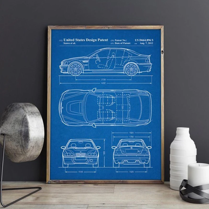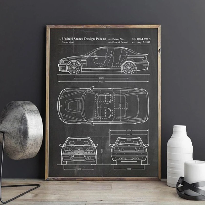 Автомобиль BMW E46 художественное оформление, автомобильное настенное искусство, транспортный плакат, декор комнаты, печать, схема, идея подарка, настенные украшения