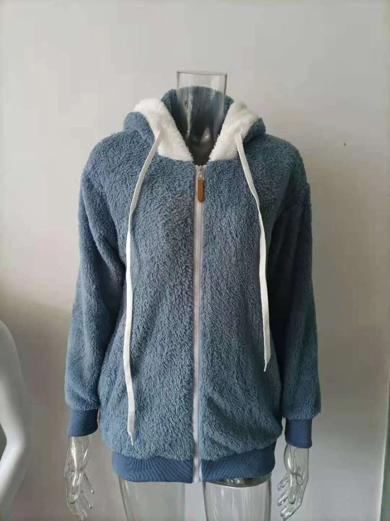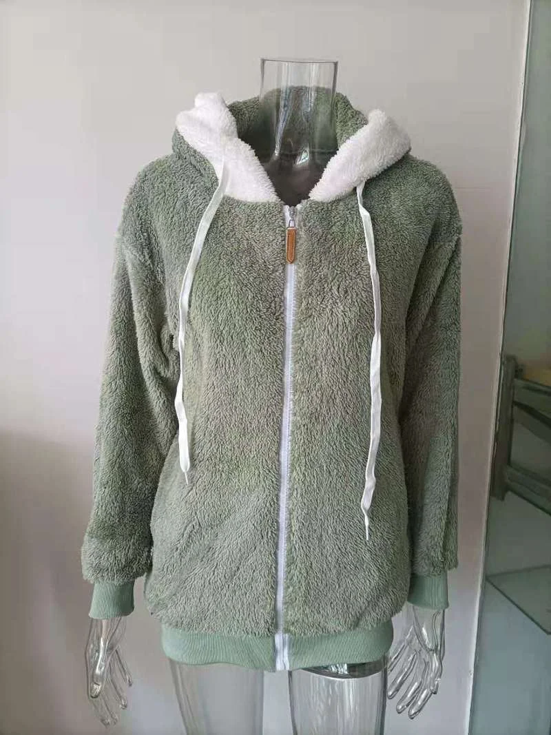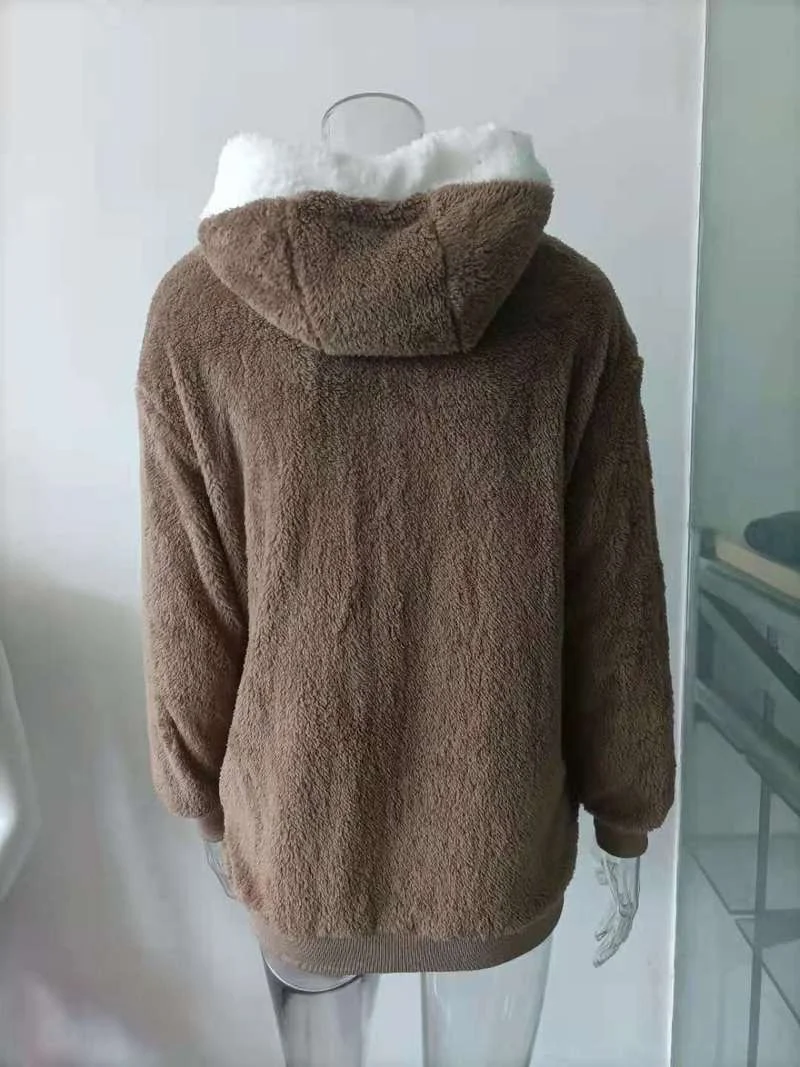 Женское зимнее пальто, однотонная плюшевая теплая куртка с капюшоно...