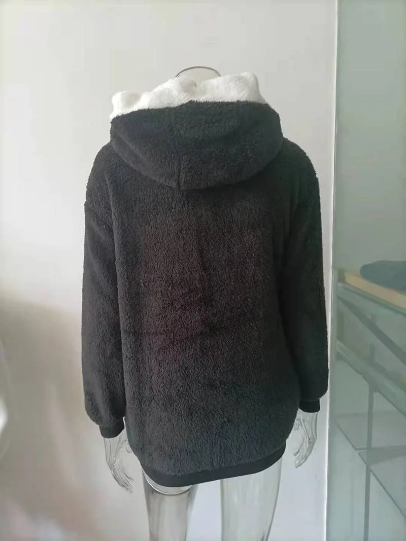 Двусторонняя толстовка унисекс, Женский пуловер, зимняя теплая курт...