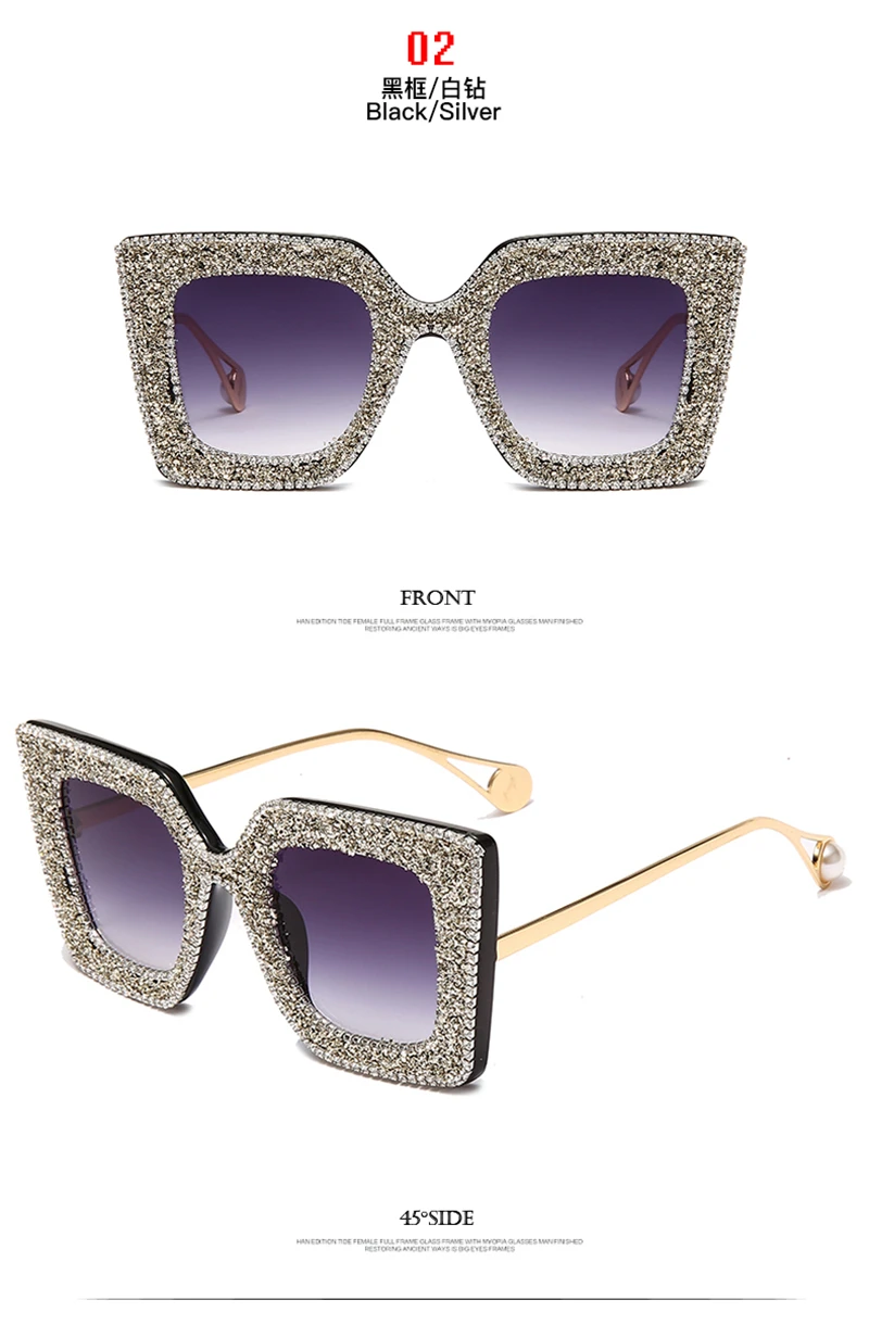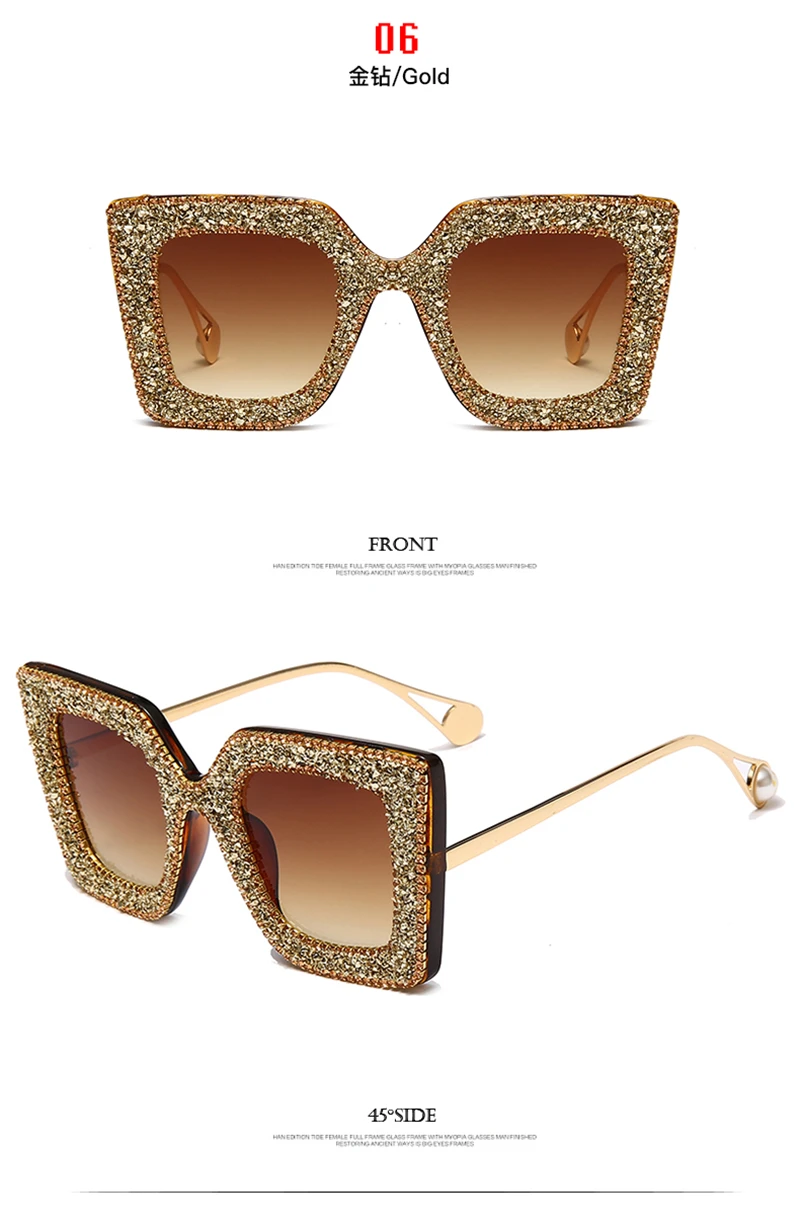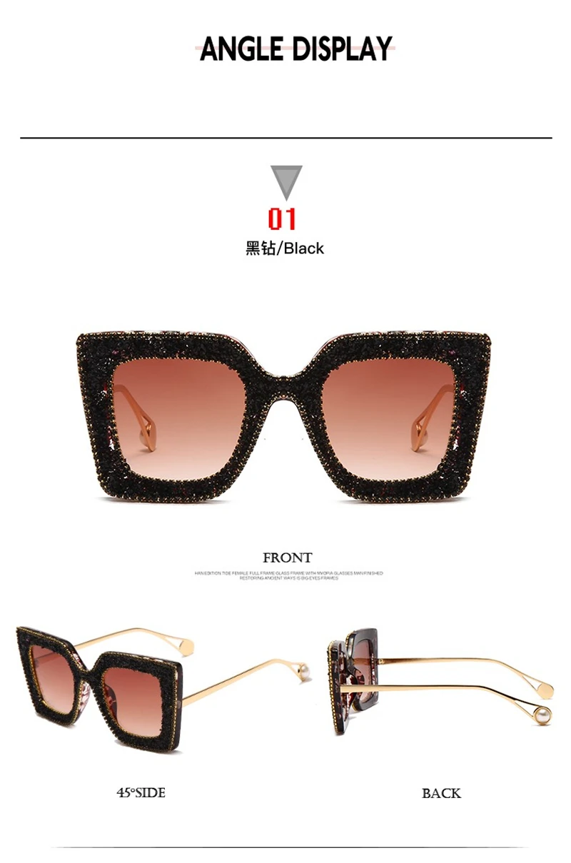 Винтажные большие солнцезащитные очки с блестящими кристаллами, женские квадратные солнцезащитные очки со стразами, солнцезащитные очки для женщин, роскошный модный оттенок UV400