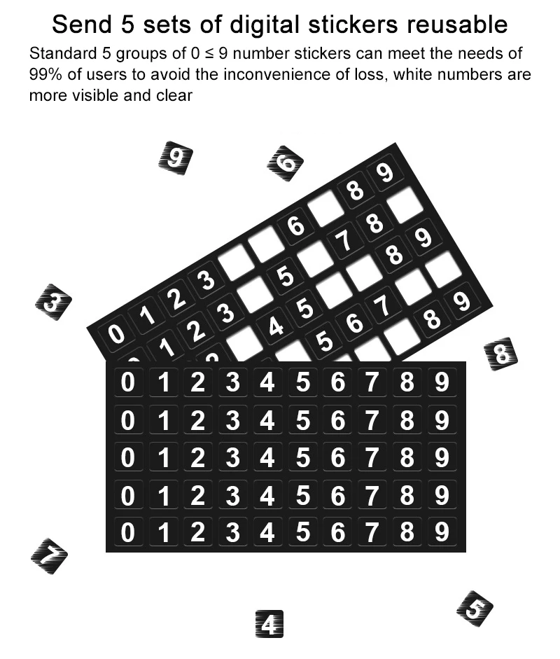 Посылка:1 * временные парковочные карты5 * наборы телефонных номеров от 0 до 9 и 5 шт "-" наклейки
