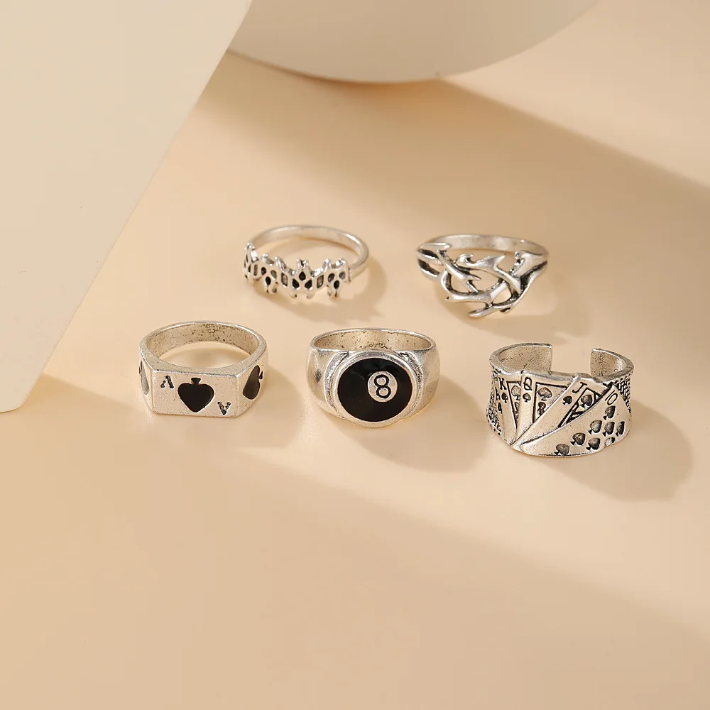Кольцо для игральных карт в стиле ретро, кольцо с пиками, солитер, творческая личность, набор колец из 5 предметов, кольцо с бабочкой