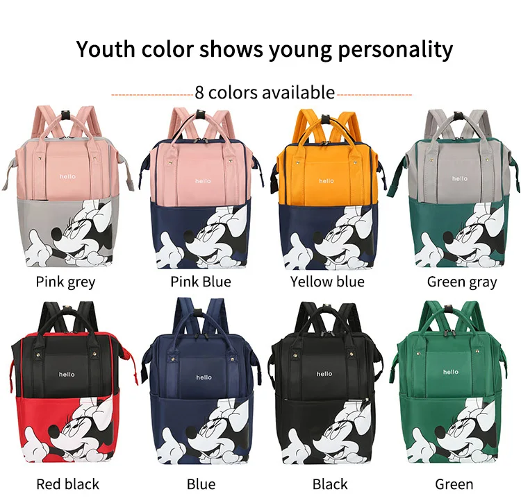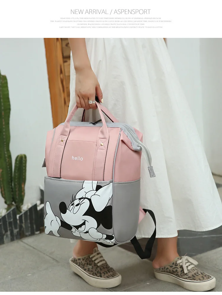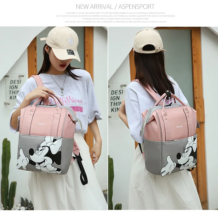 Disney новый водонепроницаемый рюкзак для подгузников с Минни, сумка для путешествий на открытом воздухе, сумка для подгузников большой вместимости, многофункциональная сумка для мамы и ребенка