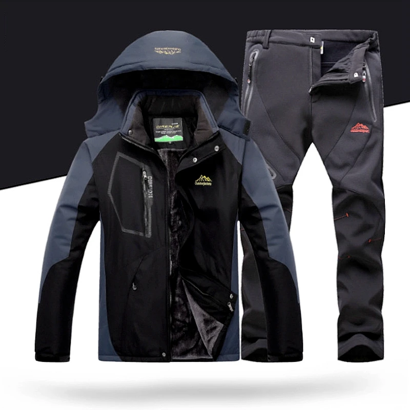 Зимний лыжный костюм, Мужская лыжная куртка, брюки, комплекты для катания на лыжах, водонепроницаемая ветрозащитная плотная теплая зимняя одежда для мужчин