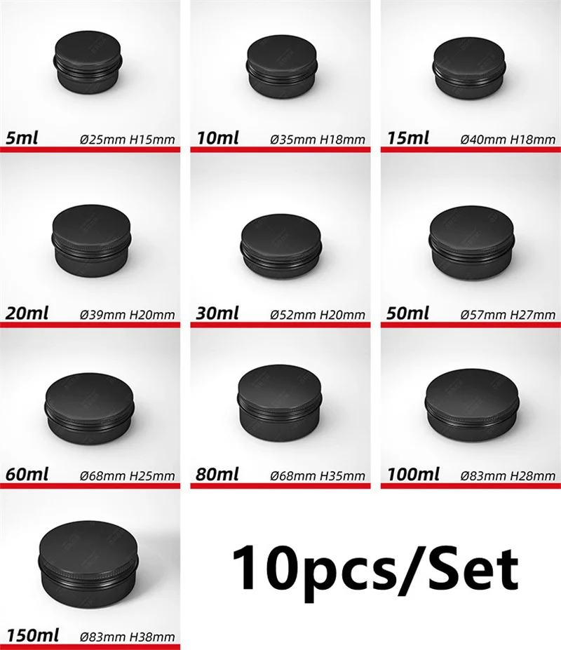 50 шт.лот 10 мл-250 мл черные алюминиевые банки многофункциональная...