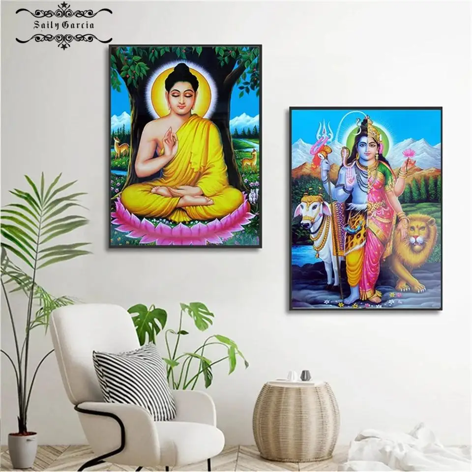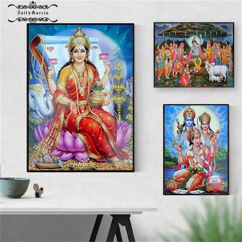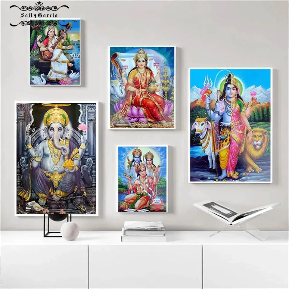 Индийская религия плакаты Shri Lakshmi Devi Saraswati Devi Ganesh холст картины Будда настенные художественные принты гостиная домашний декор