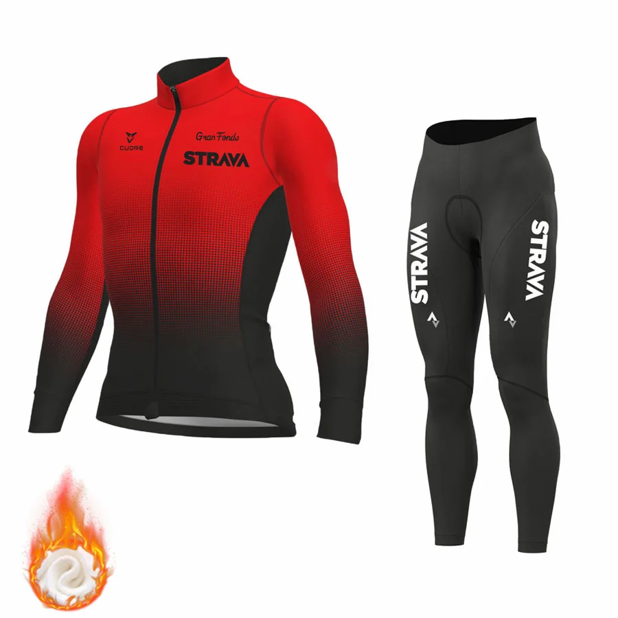 Трикотажный комплект для велоспорта STRAVA Team, Зимняя Теплая Флис...