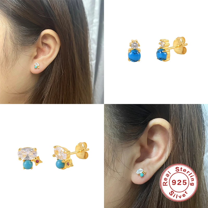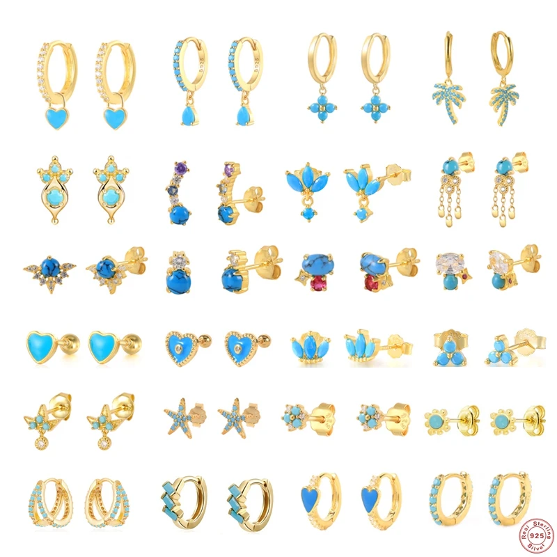 Pendientes Plata 925 пробы серебряные серьги-гвоздики богемные этнические бирюзовые серьги для женщин маленькие пирсинг 2021 тренд