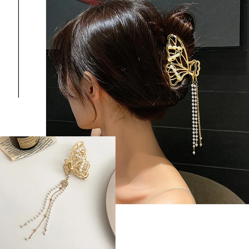 Новая женская Золотая Геометрическая заколка для волос в виде бабочки, винтажная Длинная подвеска, Шпилька для волос, краб для волос, аксессуары для волос