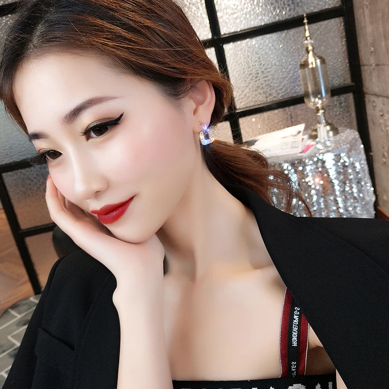 Симпатичные Блестящие Висячие серьги Стразы для женщин корейские квадратные Роскошные ювелирные изделия для ужина свадебной вечеринки аксессуары бижутерия