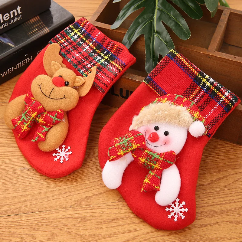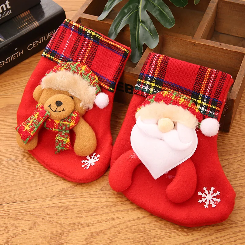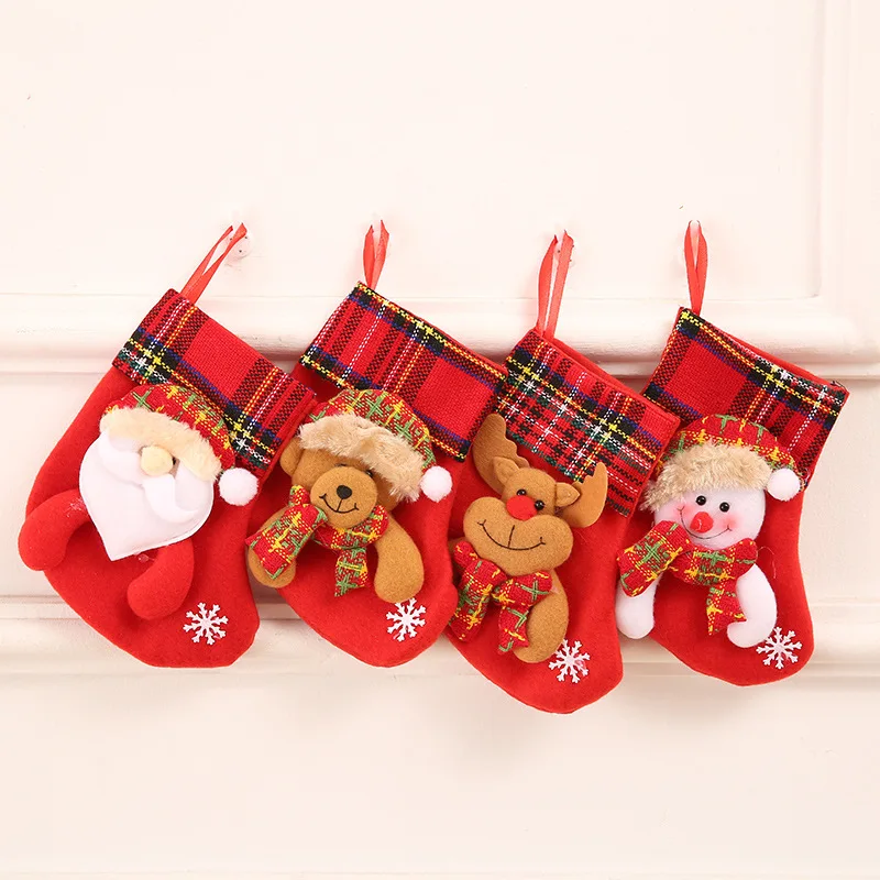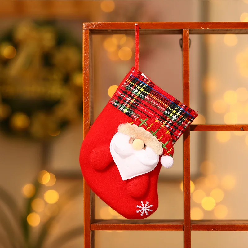2022 новогодние маленькие чулки из ткани с Санта-Клаусом, оленем, подарочные носки, Рождественская милая сумка для детей, камин, елка, Рождественское украшение