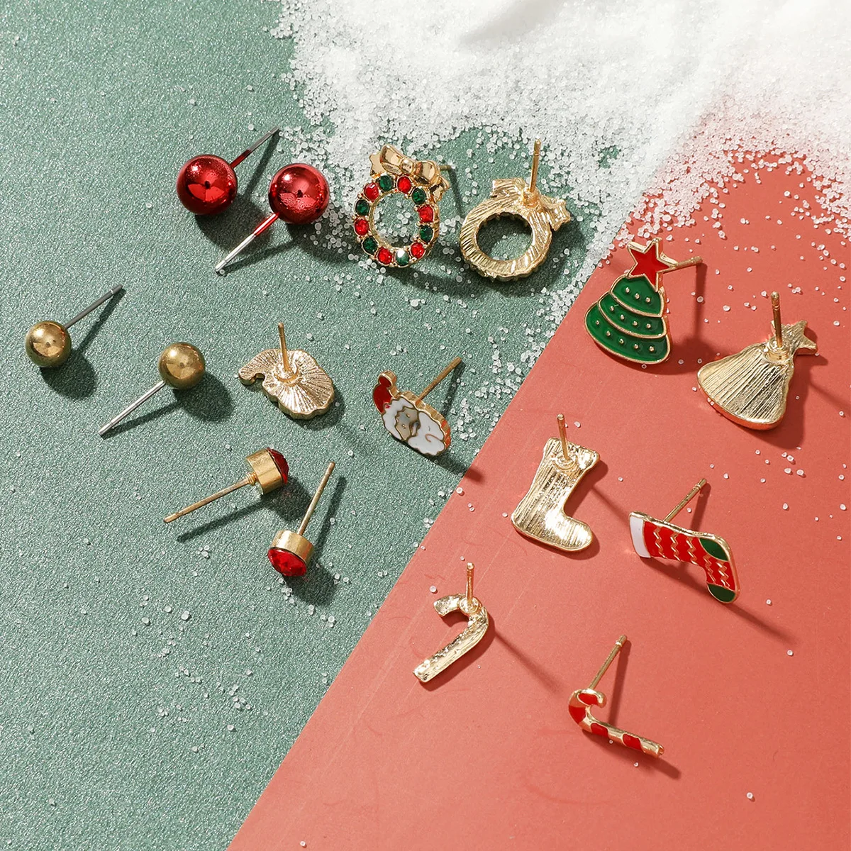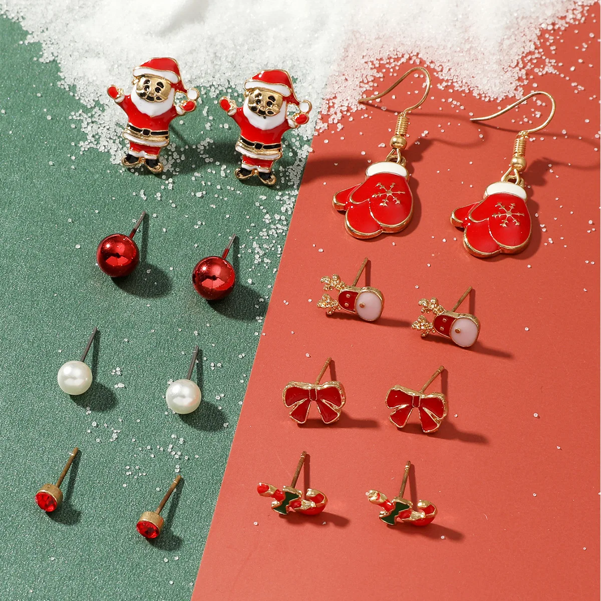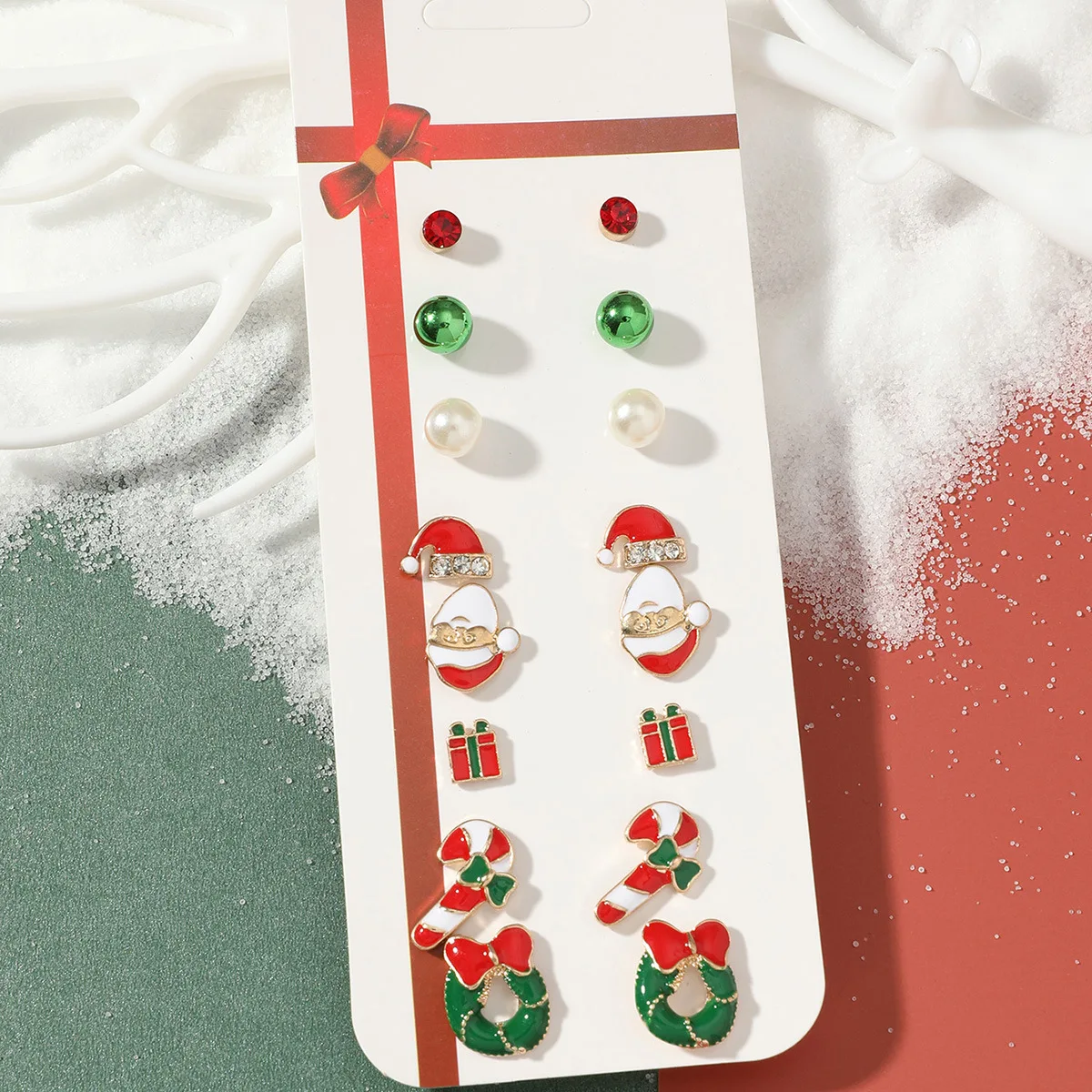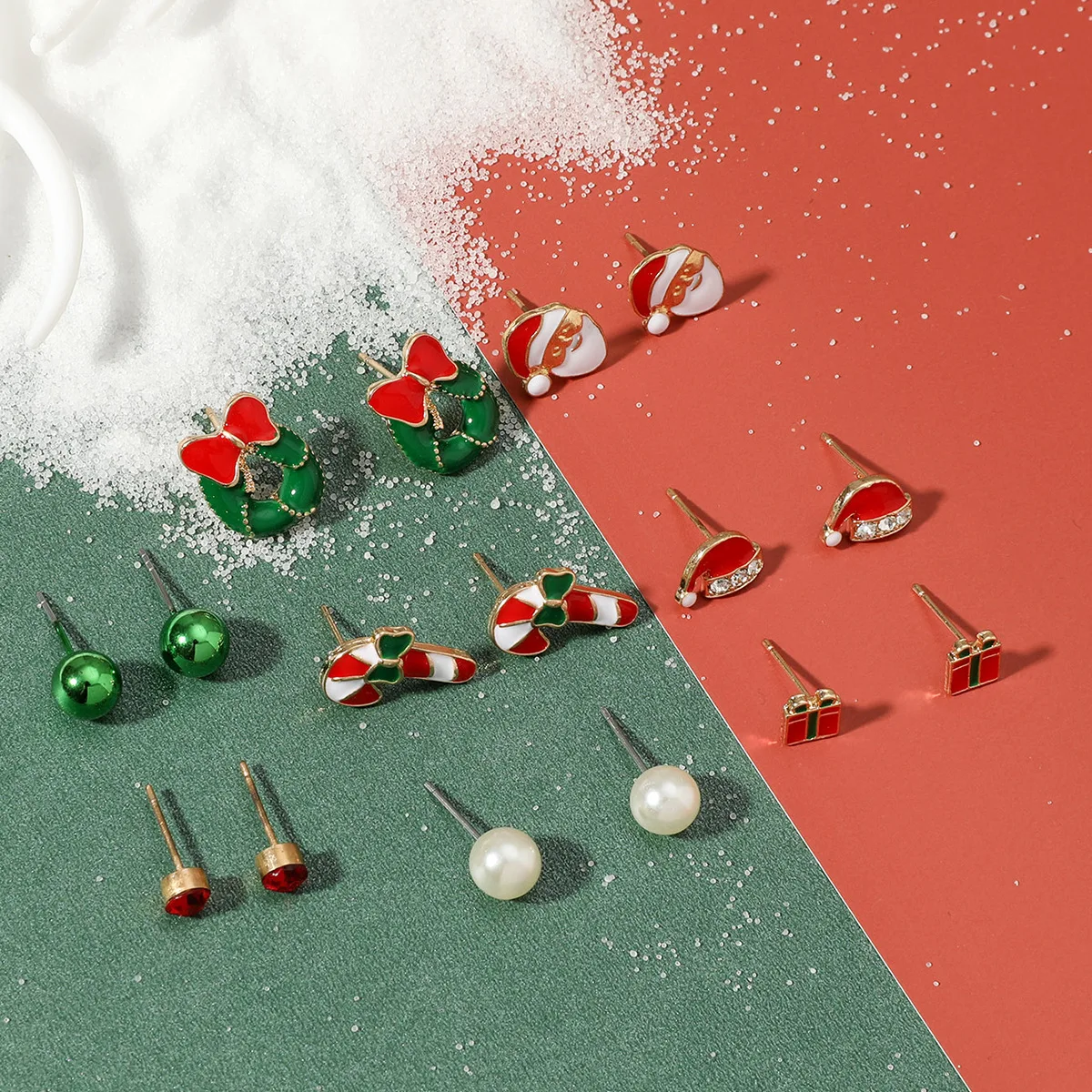 7 пар серьга с рождественской тематикой, набор для женщин и девочек, модные новые Разноцветные серьги с искусственным жемчугом и кристаллами снеговика Санта Клауса