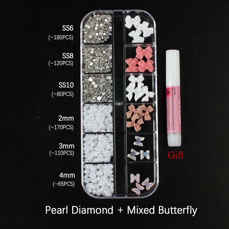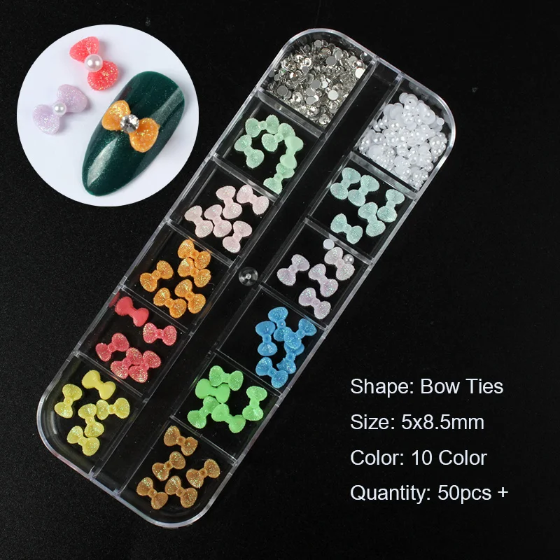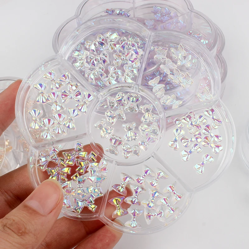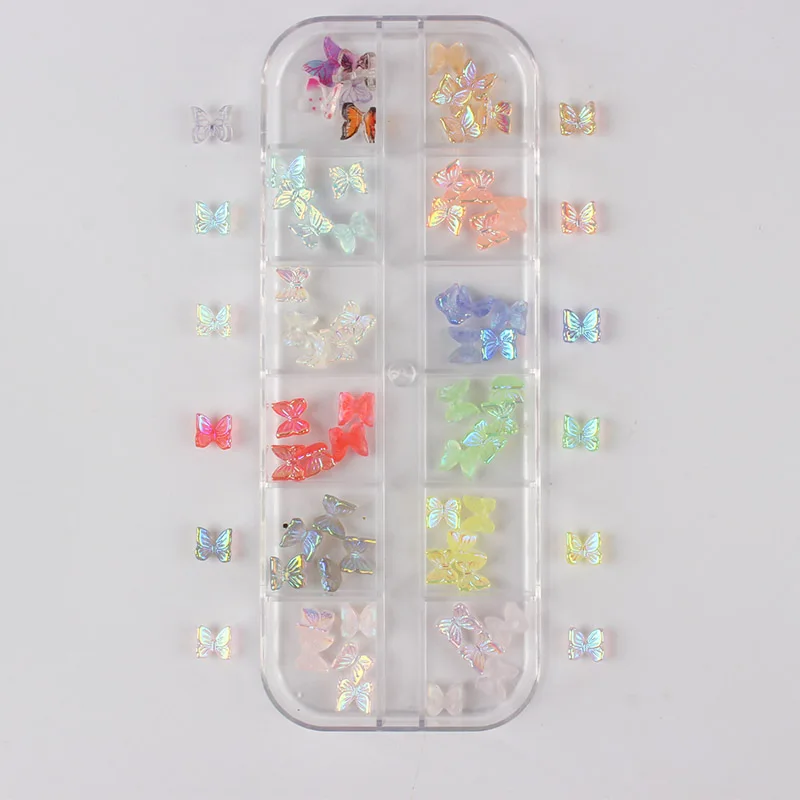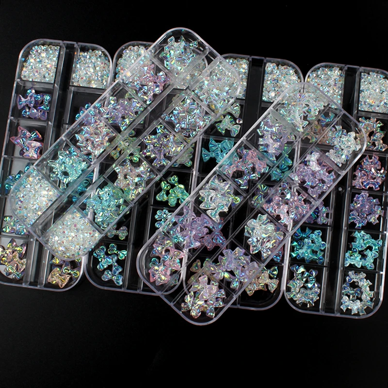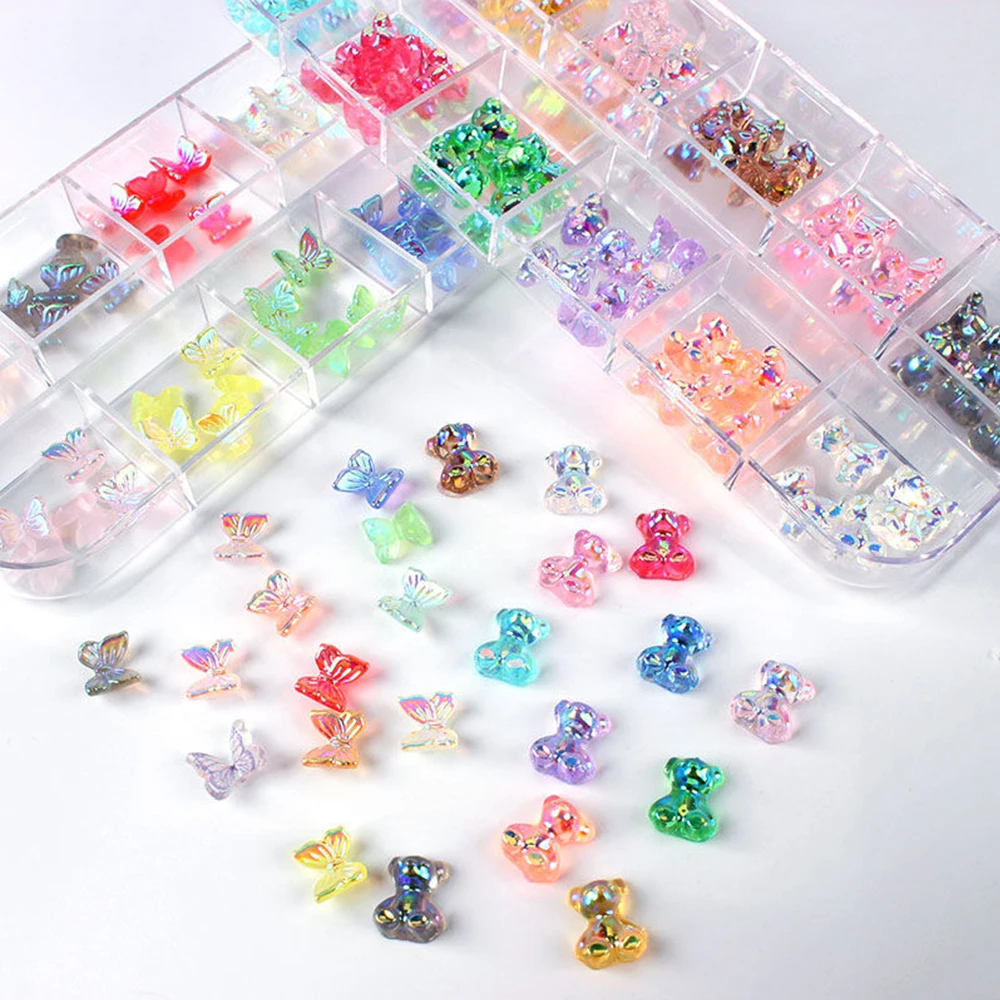 12 сетчатых коробок, 60 шт., 3D милый медведьбабочка, полимерные украшения для ногтевого дизайна, Аврора Стразы для ногтей, блестящее искусство