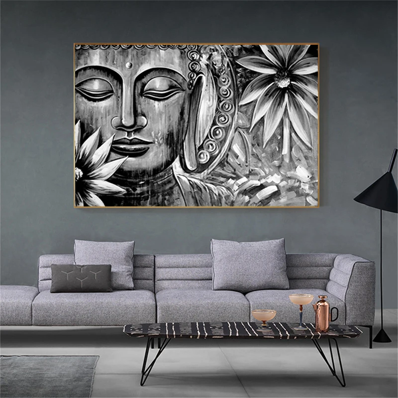 Постер с изображением серой статуи Будды, на холсте, для украшения ...
