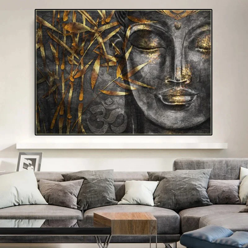 Золотая картина Будда на холсте, современный настенный постер, карт...