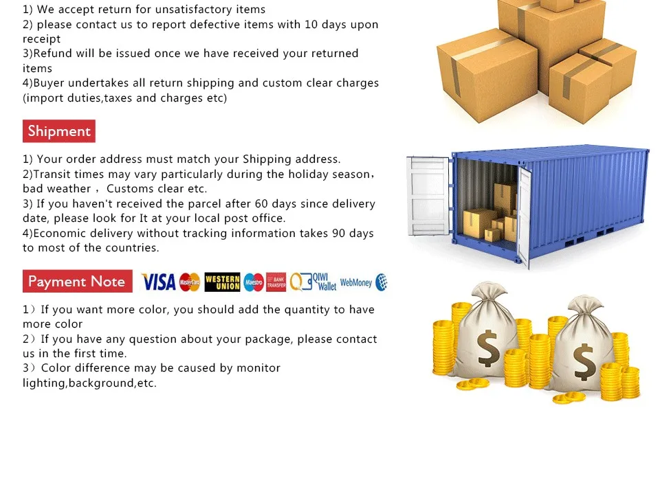 1. Размеры показаны с конкретными измерениями в подробных спецификациях. Пожалуйста, проверьте спецификации перед размещением заказа. Обычно допустимые различия в размере примерно 1-3 см в измерениях, пожалуйста, не оставляйте нам плохой отзыв.