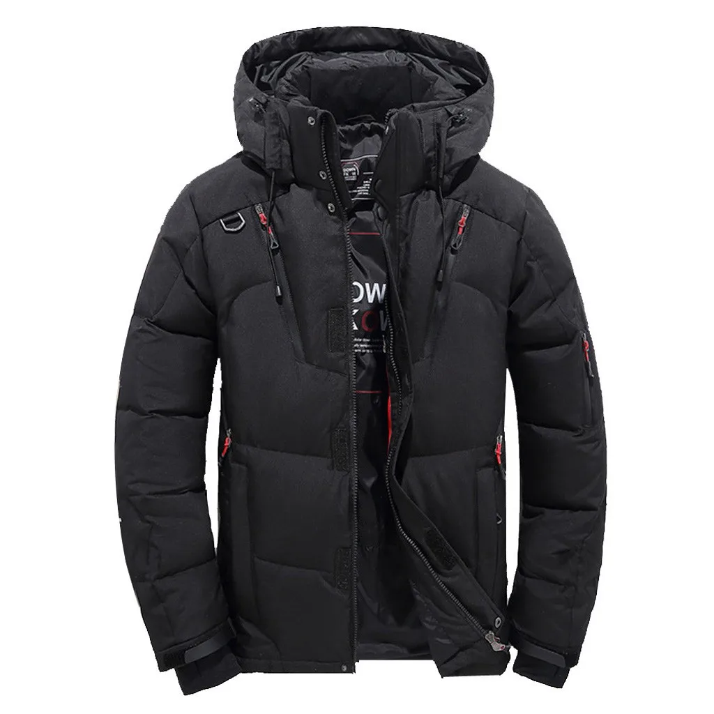 Мужская зимняя куртка на белом утином пуху, с капюшоном