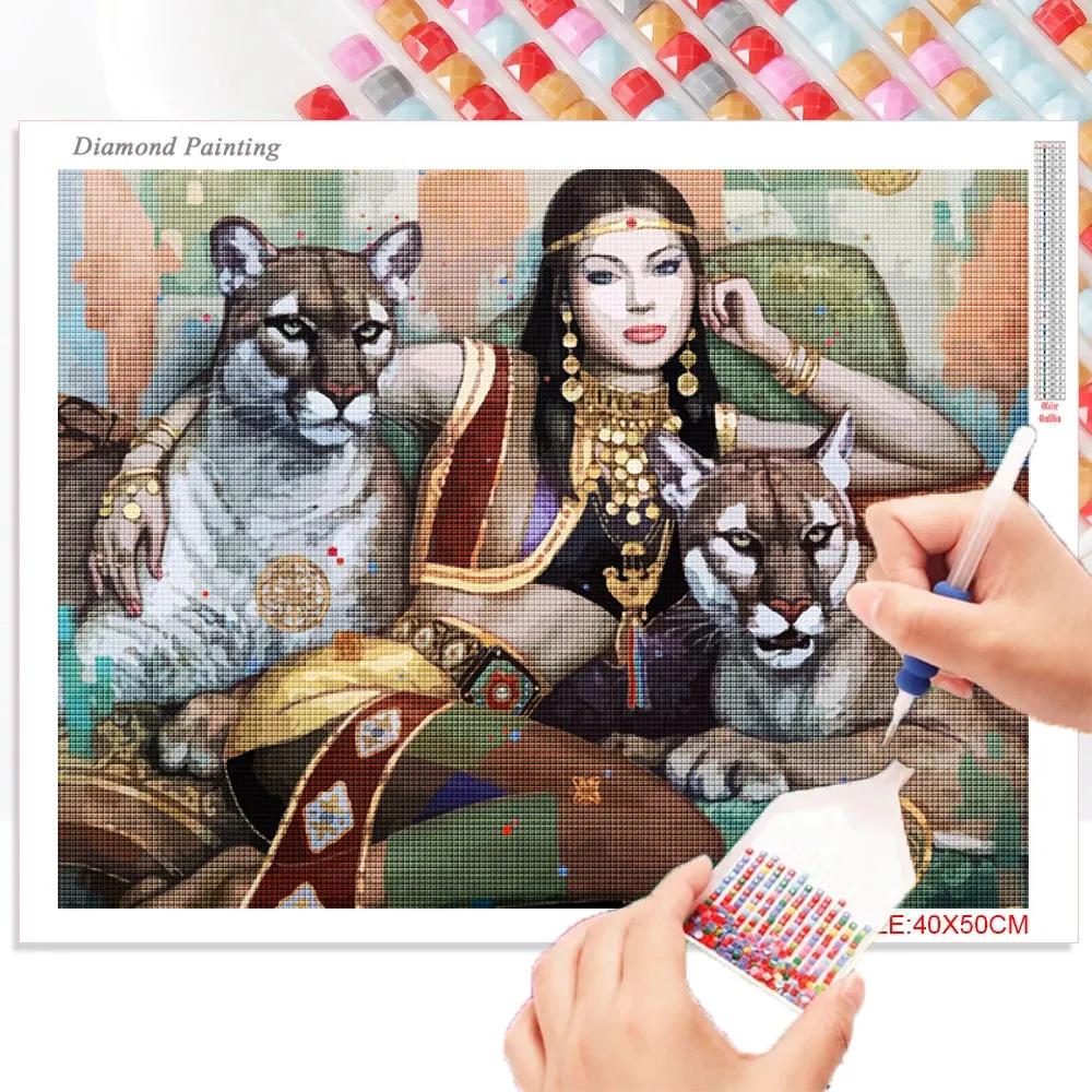 Алмазная живопись 5D сделай сам, животные, женщина, полная Алмазная...