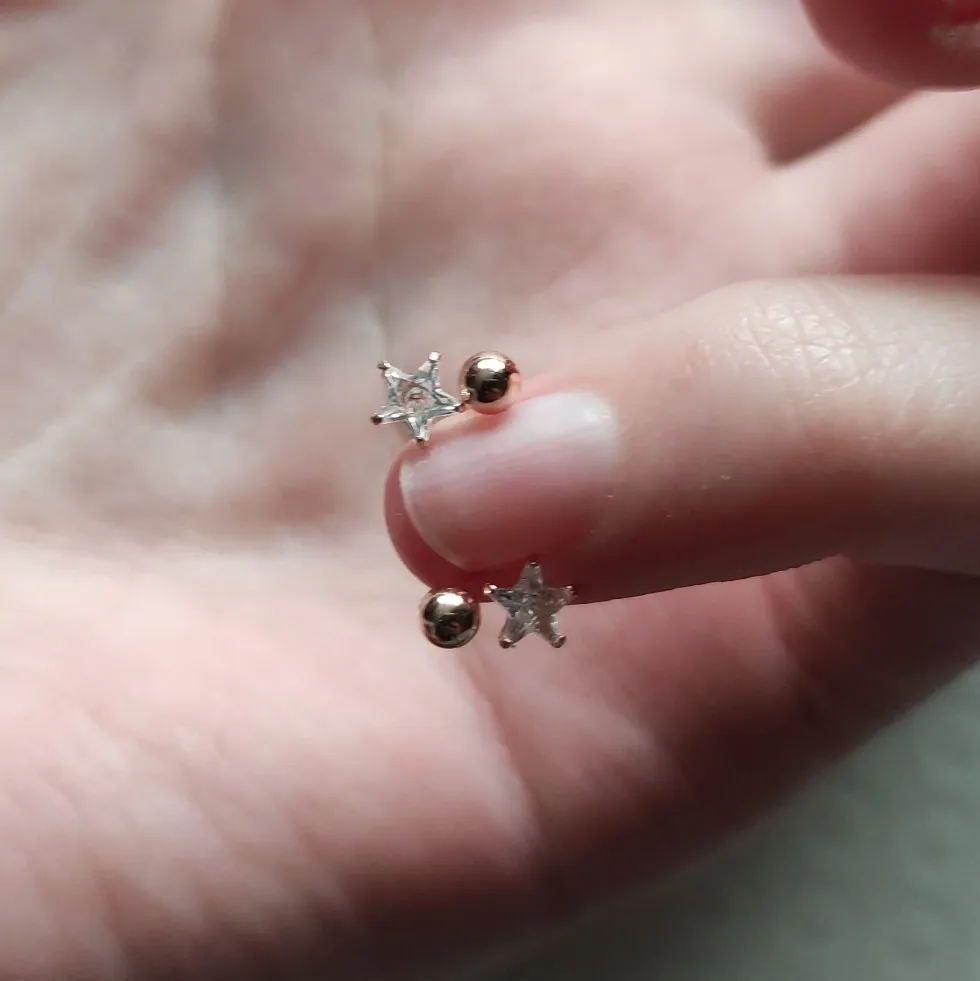 Прекрасные сережки,жене очень понравились! Милые и миниатюрные,хоть выглядят просто но очень необычно. Единственное,это тяжело надевать,нужна помощь,в одиночку, жена надеть не смогла, тяжело вкручивать шарики* Отправлено и доставлено быстро, товар и продавца рекомендую однозначно!