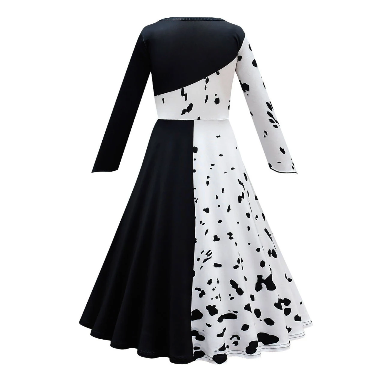 Новинка, модные костюмы на Хэллоуин из фильма для девочек, детская одежда Cruella De Vil, косплей, необычные черно-белые платья принцессы в горошек