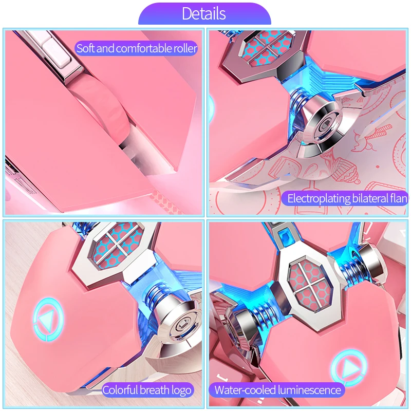 Бесшумная розовая проводная мышь, 6 клавиш, 7 ярких цветов, светоди...