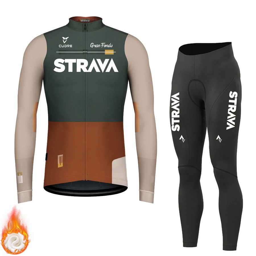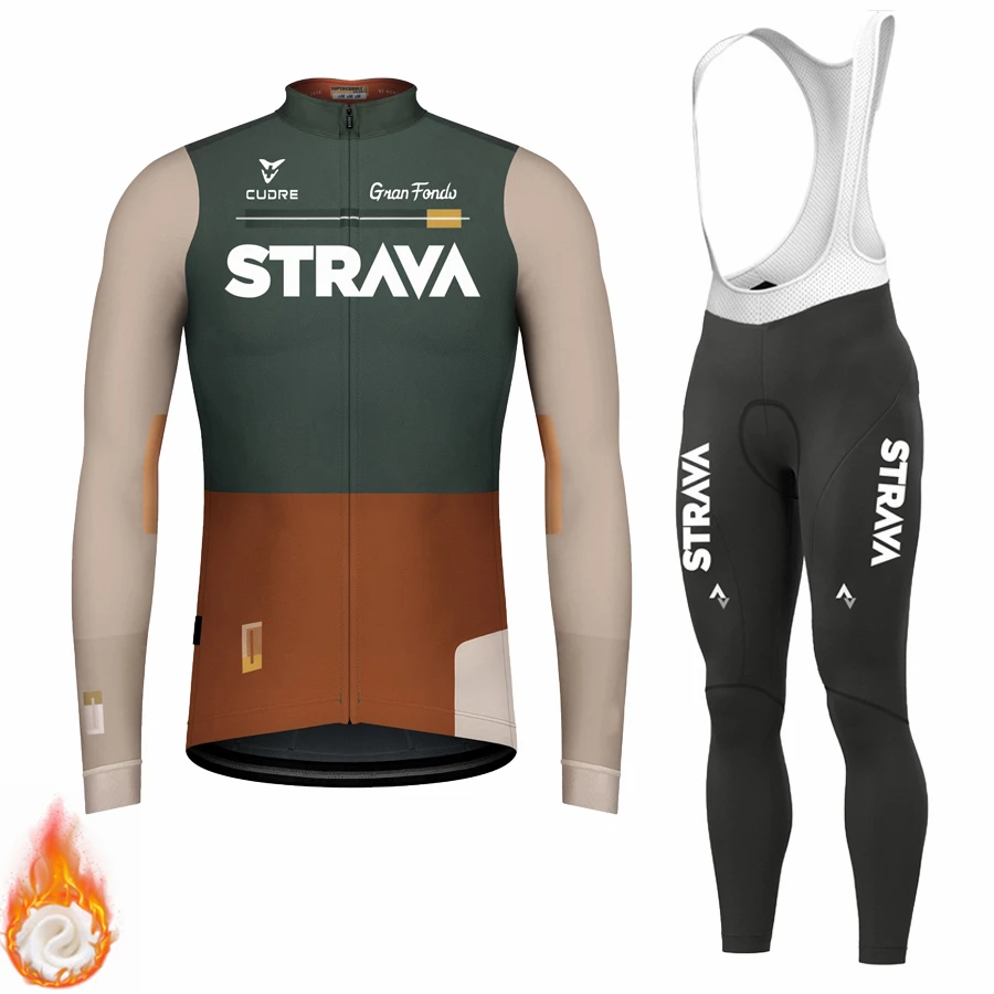 STRAVA зимний велосипедный комплект велосипедная команда с длинным рукавом термальная флисовая спортивная одежда гоночный Профессиональный Трикотажный костюм для мужчин Ropa Ciclismo