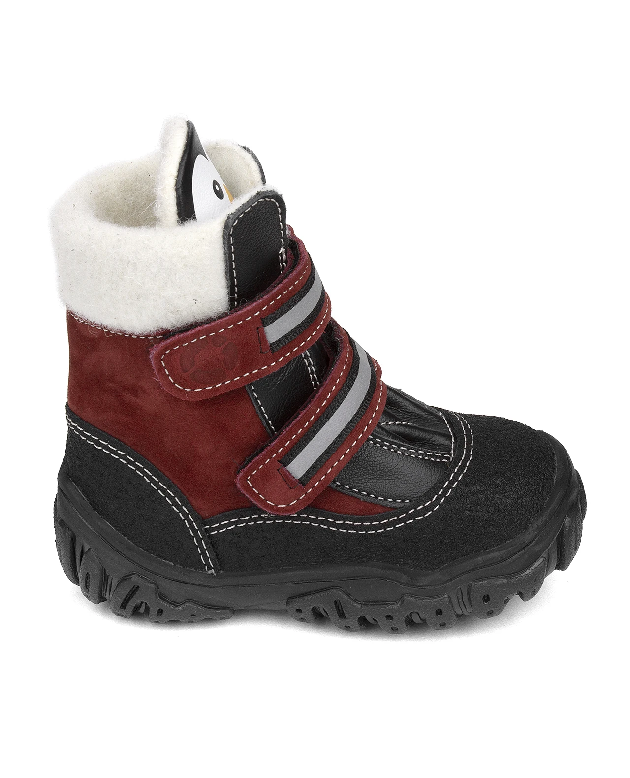 Ботиночки для самых маленьких, утепленные шерстяной байкой. Упругая анатомическая стелька для правильного формирования стопы. Жесткий фиксирующий задник с удлиненным крылом надежно стабилизирует голеностопный сустав во время ходьбы. Упругая, умеренно-эластичная подошва с протектором и защитой носа, имеющая перекат, позволяющий повторить естественное движение стопы при ходьбе для правильного распределения нагрузки на опорно-двигательный аппарат ребенка. Подкладка из шерстяной байки поддерживает комфортную температуру внутри обуви при погодных условиях от +5 до -7 градусов. Светоотражающая лента на липучках. Застежка на две липучки обеспечивает максимальное раскрытие модели и комфорт при надевании, а также позволяет регулировать полноту ботинка. Функциональное украшение на липучках - светоотражающая тесьма.