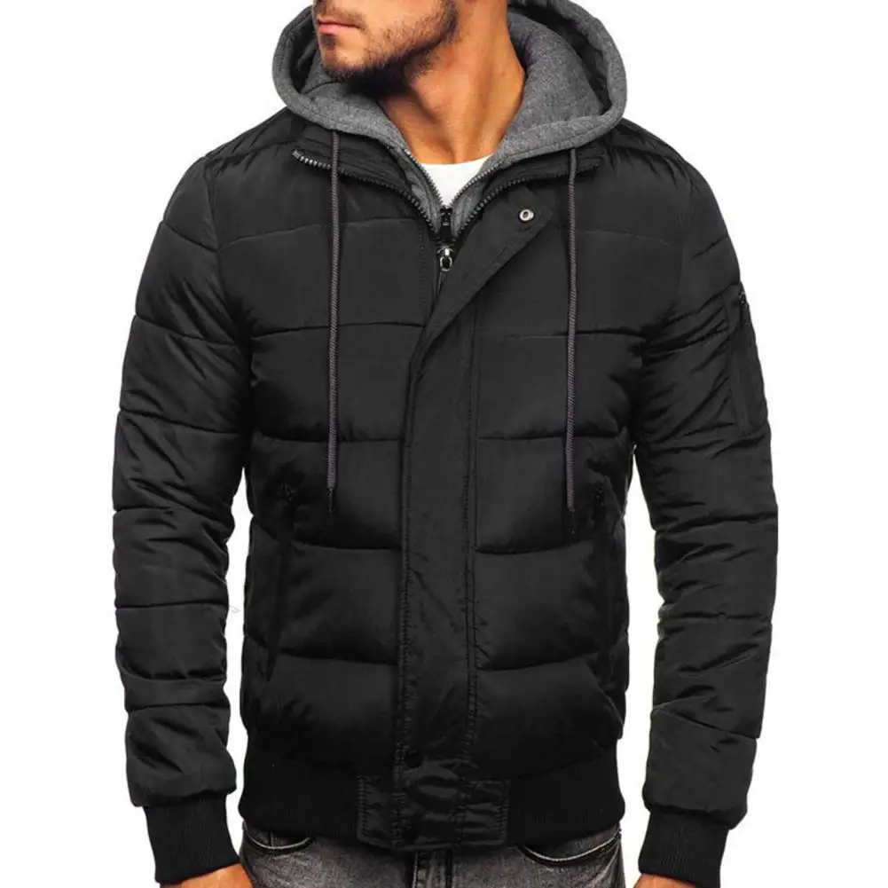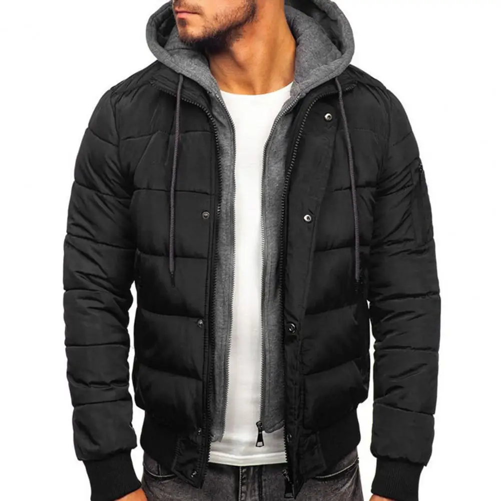 Зимнее пуховое пальто для мужчин, контрастные цвета, имитация двух предметов, мягкая, очень теплая верхняя одежда с капюшоном, ветрозащитная мужская куртка