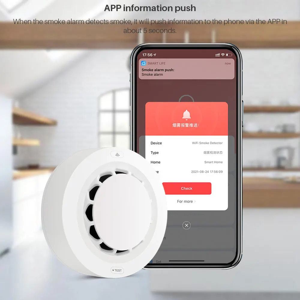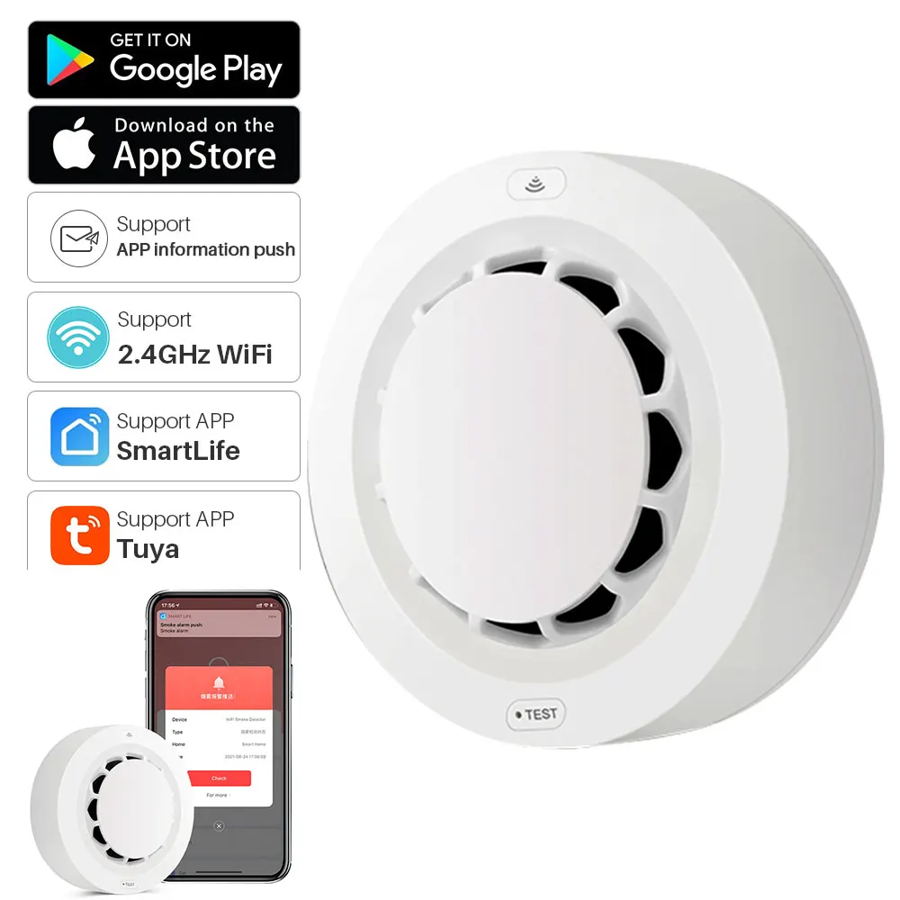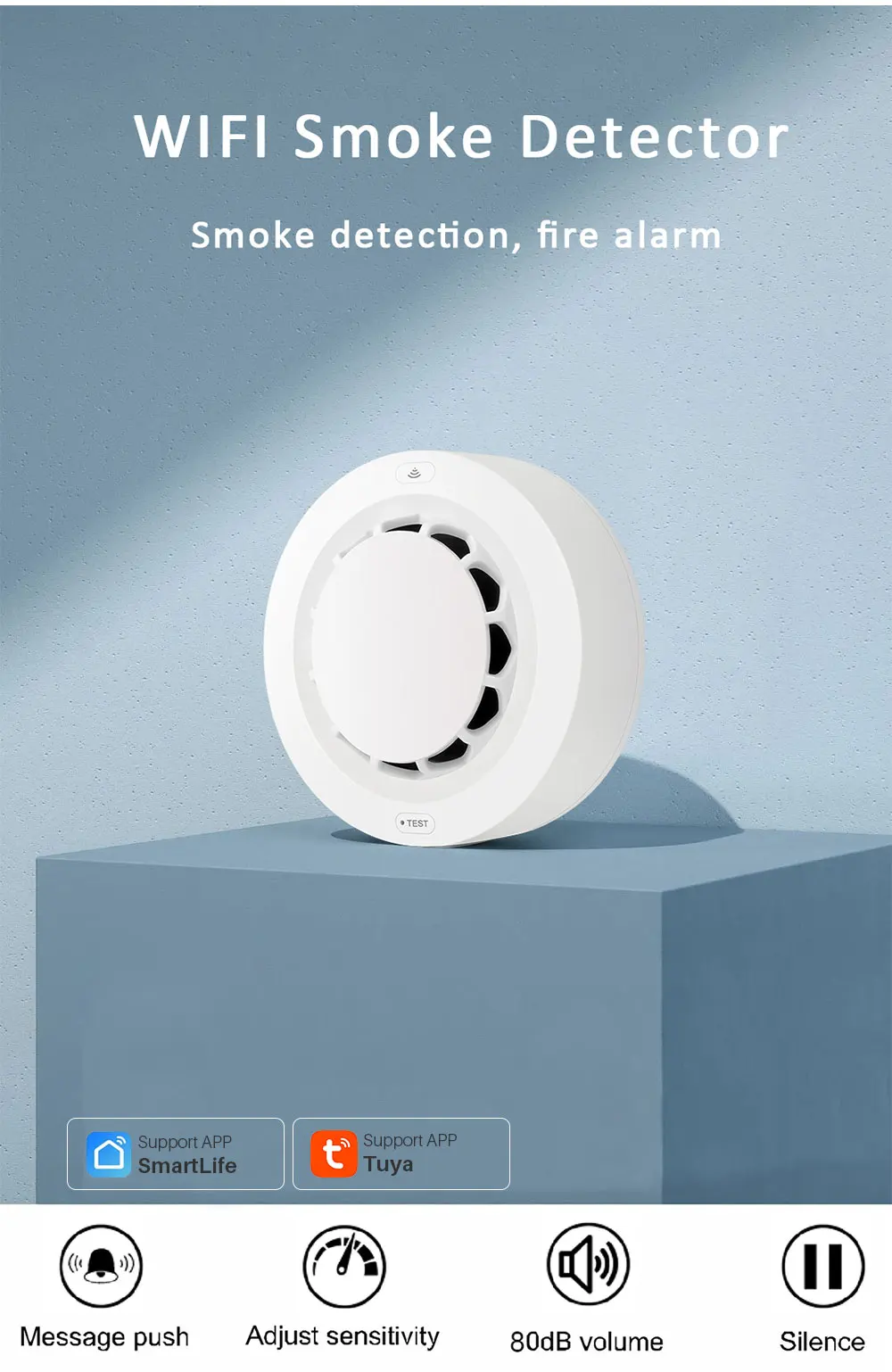 Датчик дыма Tuya с Wi-Fi, датчик пожарной сигнализации для умного дома, работает с приложением Smart Life