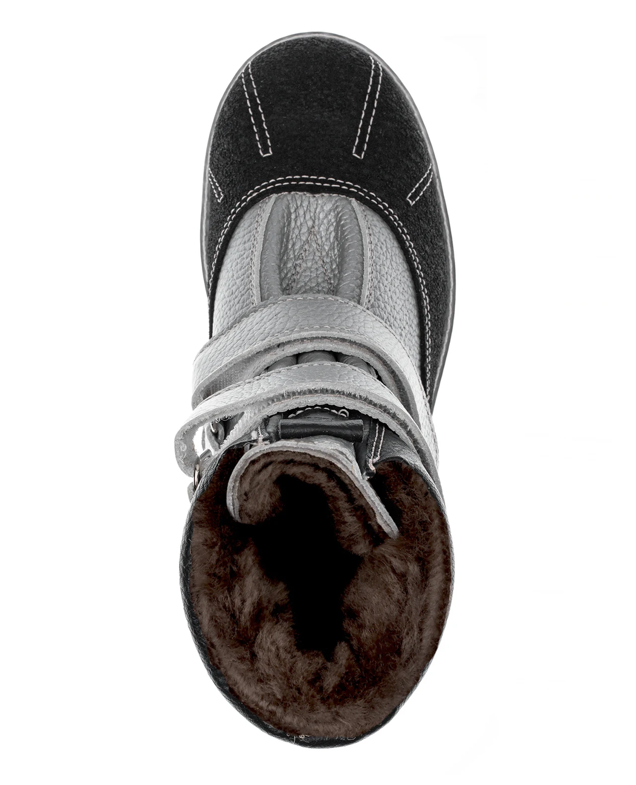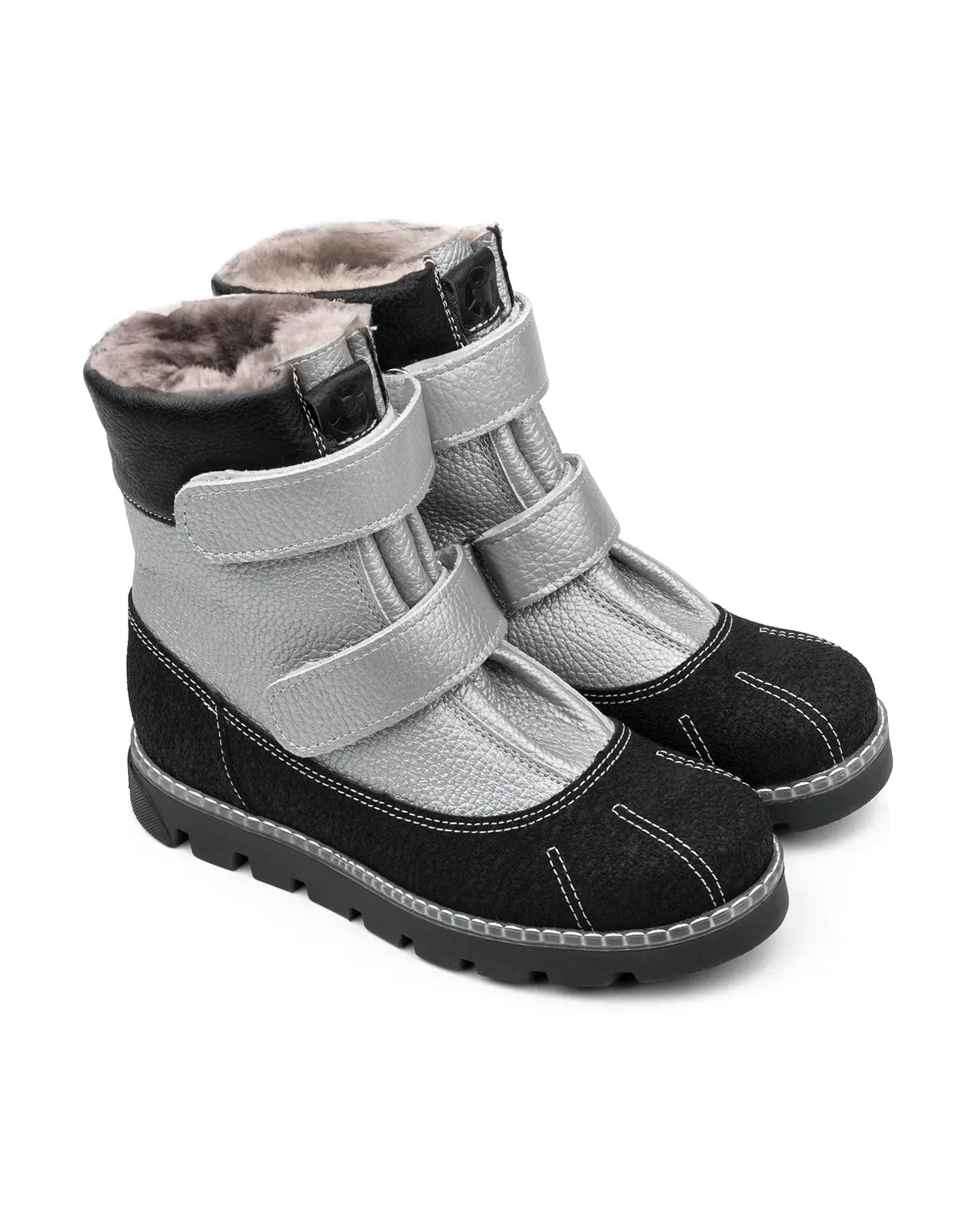 Ультрамодные серебристые ботинки на натуральном меху. Упругая анатомическая стелька для правильного формирования стопы. Жесткий фиксирующий задник с удлиненным крылом надежно стабилизирует голеностопный сустав во время ходьбы. Упругая, умеренно-эластичная подошва с протектором, имеющая перекат, позволяющий повторить естественное движение стопы при ходьбе для правильного распределения нагрузки на опорно-двигательный аппарат ребенка. Подкладка из натурального меха поддерживает комфортную температуру внутри обуви при погодных условиях от 0 до -25 градусов. Застежка на две липучки для наилучшего регулирования голенища по ширине.