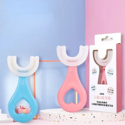 Детская зубная щетка U-образной формы, зубная щетка с ручкой, Силиконовая зубная щетка для ухода за полостью рта для малышей от 2 до 12 лет