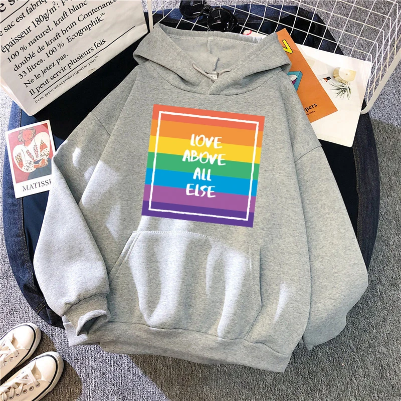 Женский свитшот с принтом Love, зимний Повседневный Радужный свитшот большого размера в стиле Харадзюку, Осень-зима