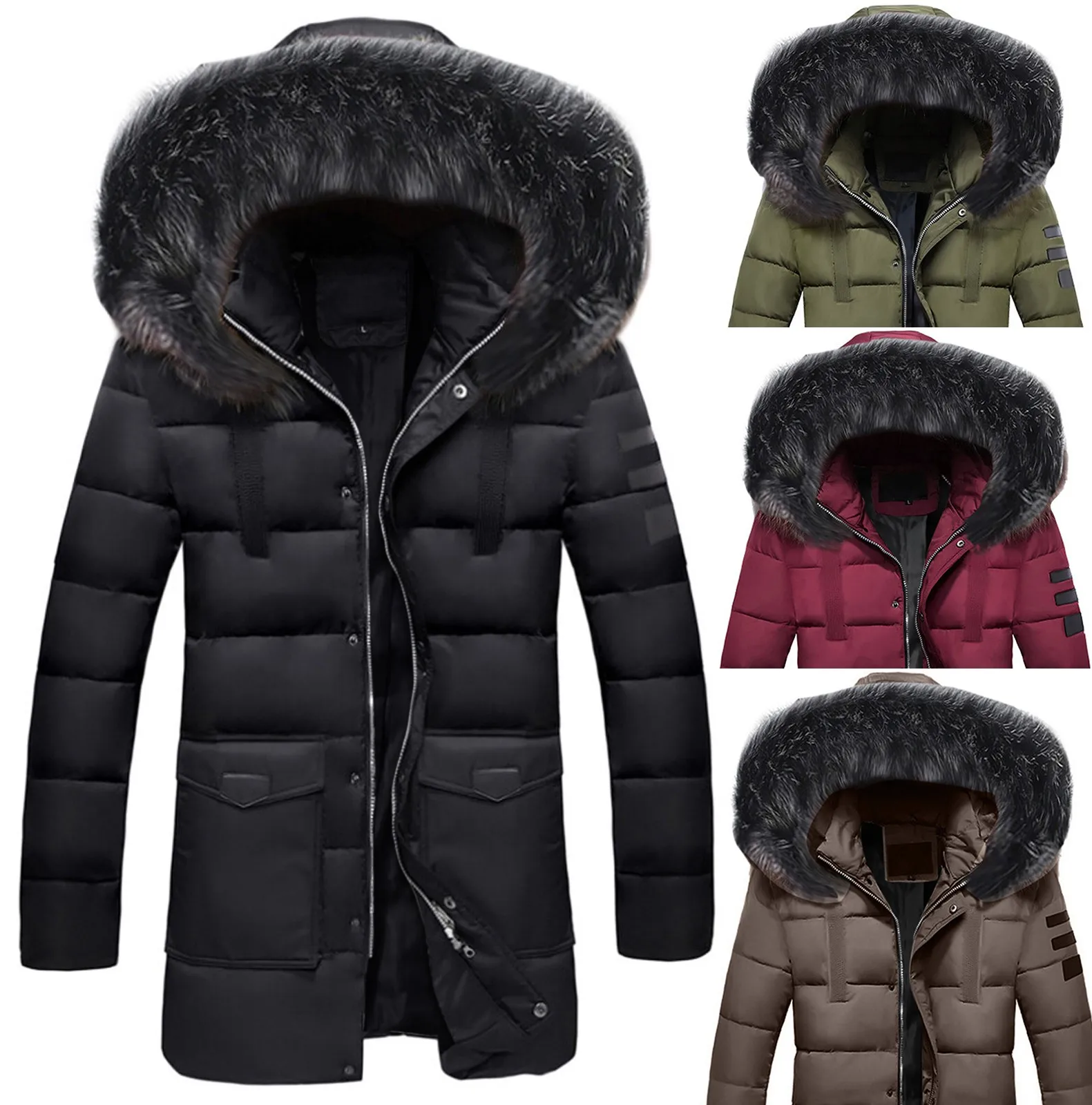 Мужская теплая хлопковая куртка средней длины, модная однотонная парка, пальто, Осень-зима 2021